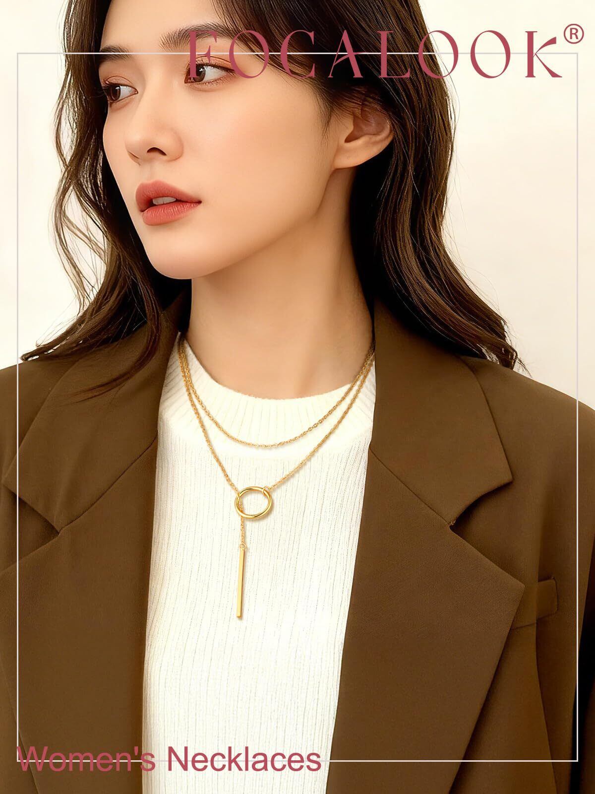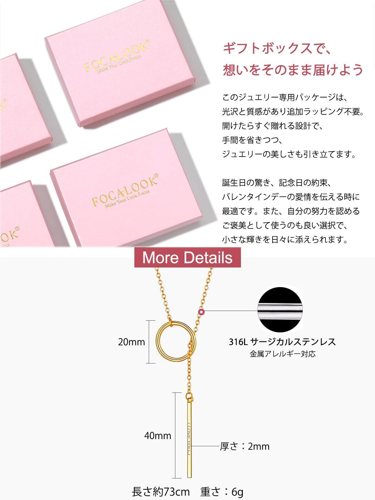 ネックレス仕様:全長73cm リング:直径2cm バー:長さ4cm カラー:ゴールド、シルバー、ブラック