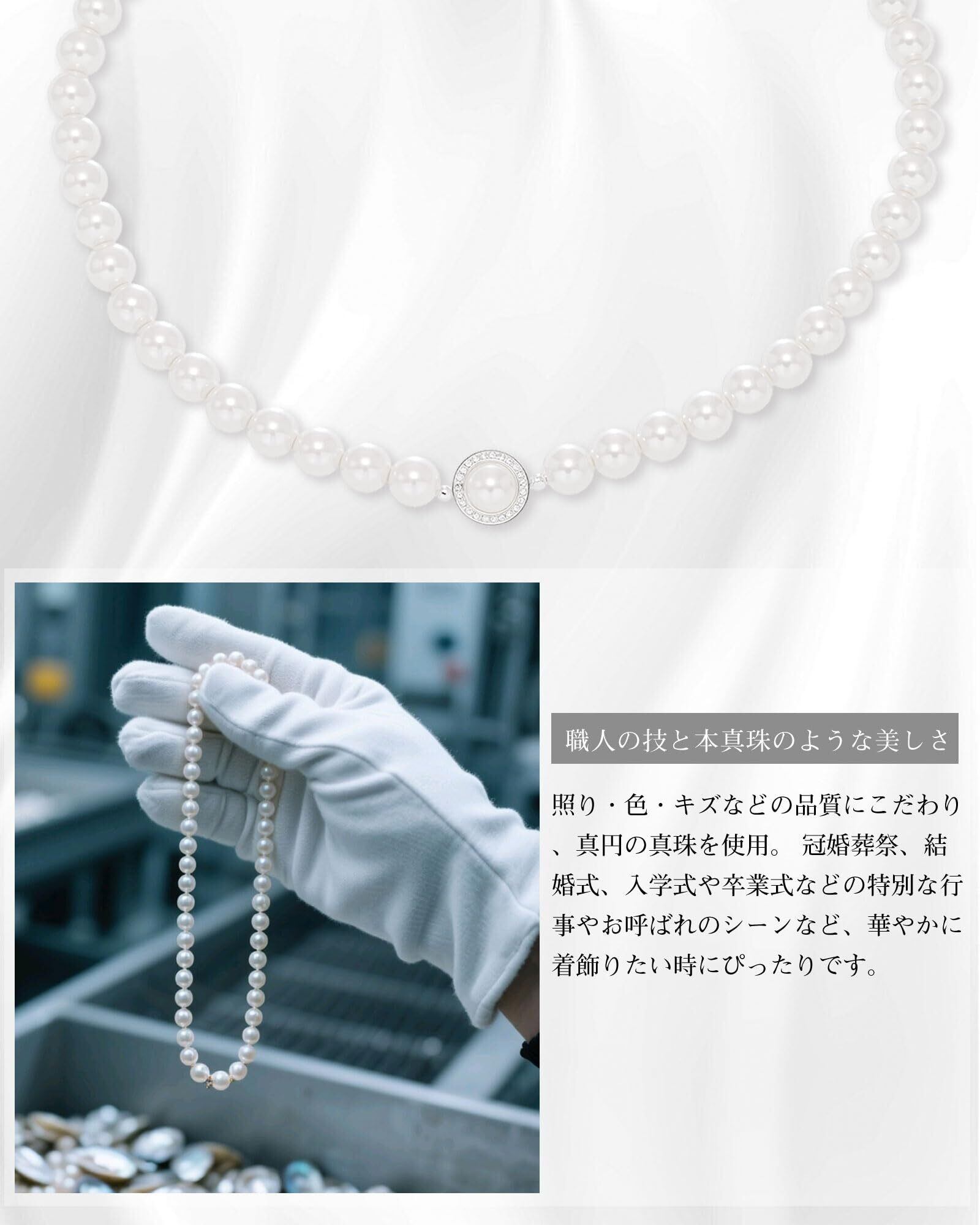 【職人のこだわり・1粒1粒大切に】8mmのそれぞれの真珠は、職人が1粒ずつ厳選した逸品です。光沢度・丸み・表面の欠陥率まで細かくチェックし、約30%しか採用されない高品質な真珠のみを使用。月光のように潤いある輝きを実現し、着けた瞬間に高級感が際立ちます。【真珠ネックレス冠婚葬祭 葬式 ネックレス しんじゅのネックレス パールネックレス ホワイト ピンク ネックレス パール ローズゴールド】