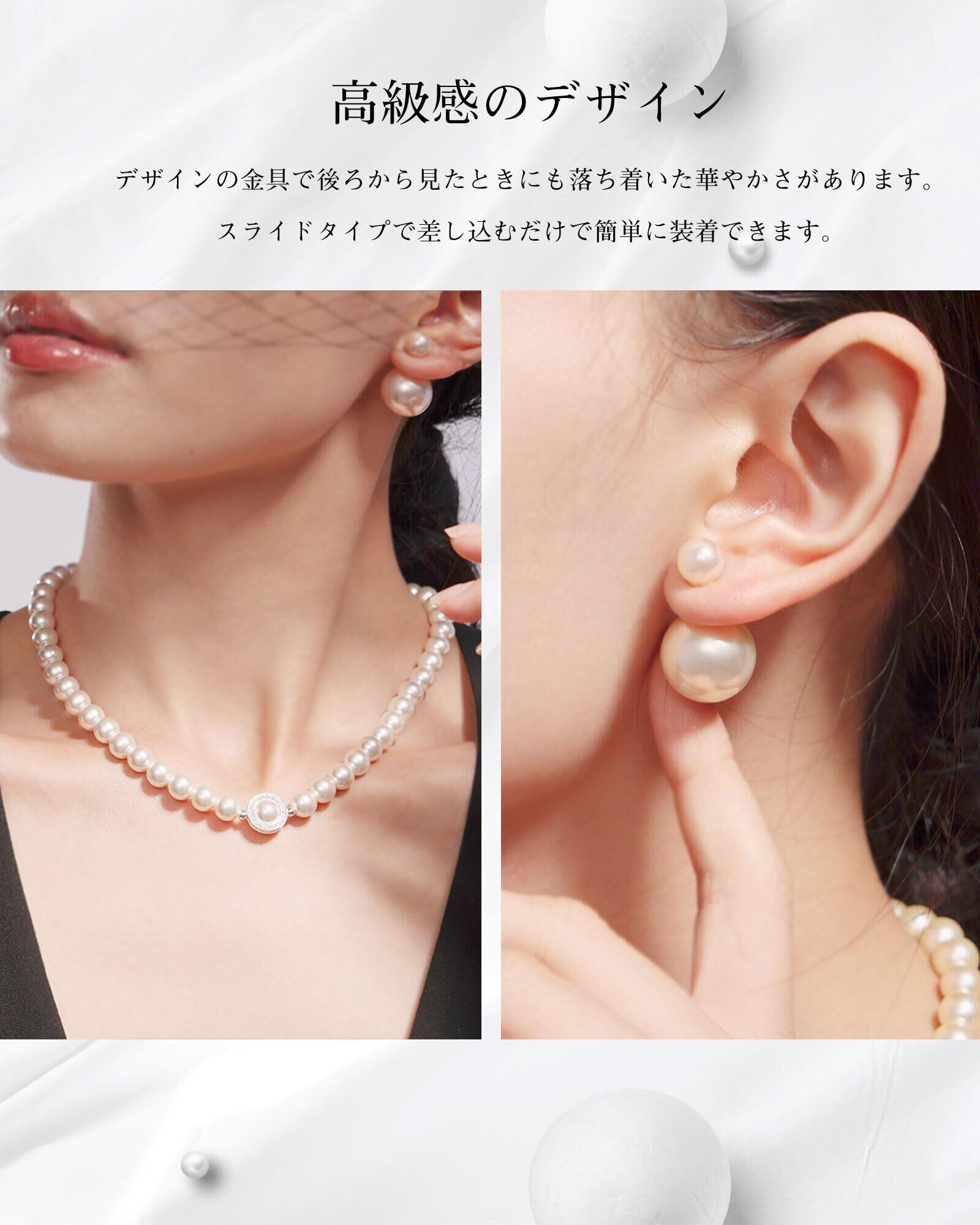 【至高の素材・安心して着けられる】 パールネックレスのコアパーツ(クリップ・ペンダント・ピアス)はすべて925シルバー製。丁寧な研磨と酸化防止処理を施し、肌触りが滑らかで日常使用でも褪色やアレルギー反応がほとんどありません。美観と機能性を両立し、敏感肌の方も安心してパールネックレスの優しさを楽しめます。【パールネックレスシルバー925 真珠ネックレス 冠婚葬祭用 パールネックレス 結婚式 ネックレス】