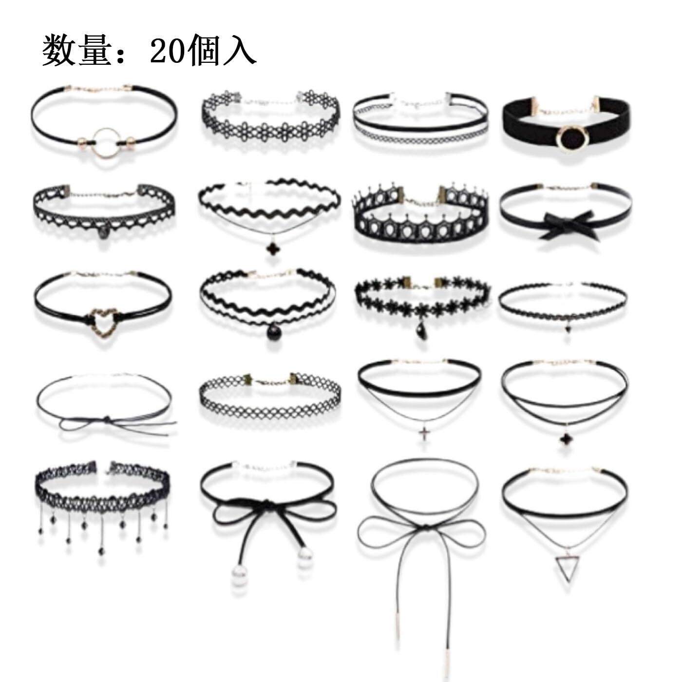 【2022最新】首輪20点セット チョ ーカー ネックレス 調整可能 ファッション ゴシック様式 コスプレ モード系 チョーカー レース ア かわいい ペンダント付き クセサリー choker (黒)