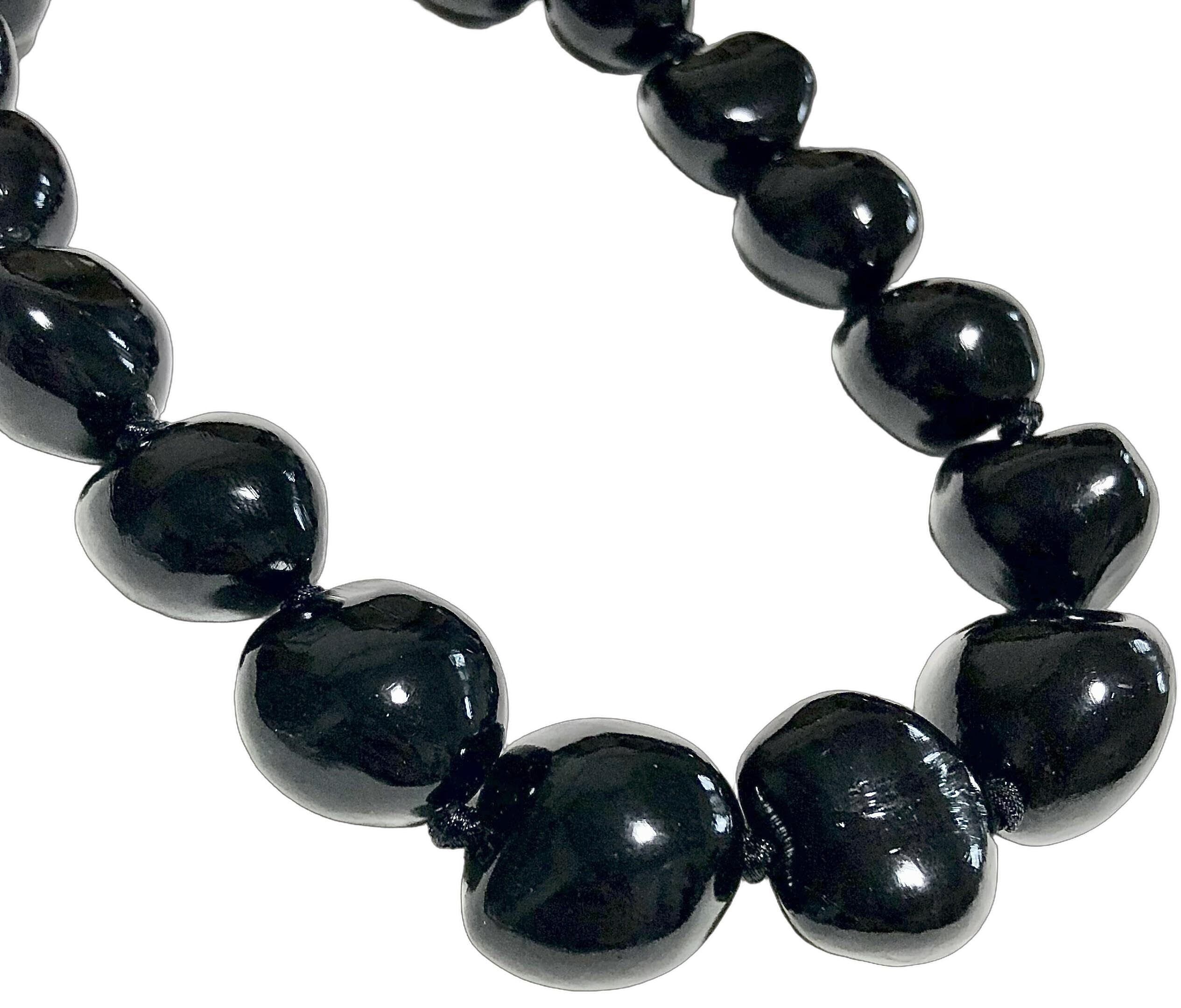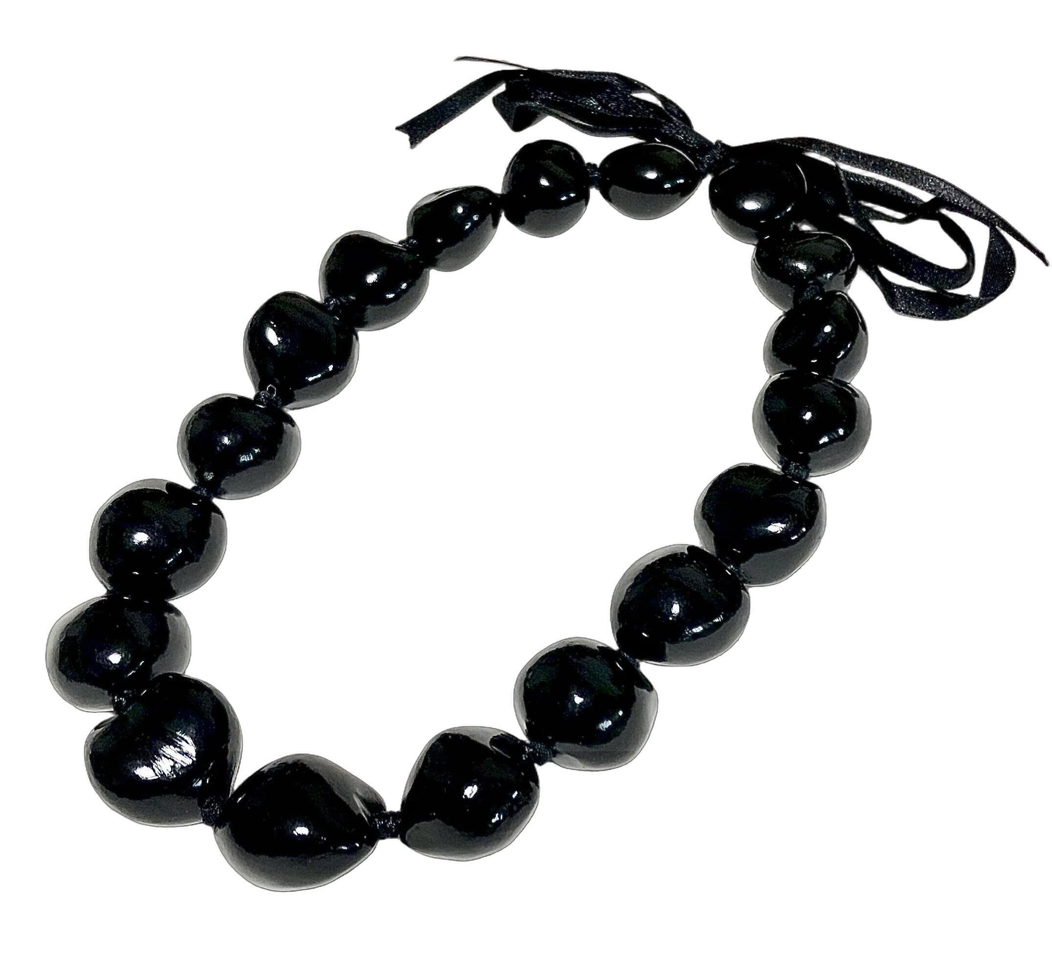 ククイナッツを1つ1つ丁寧に磨き上げ、職人により編み込まれた、上質なブラックククイナッツレイのショートサイズです。