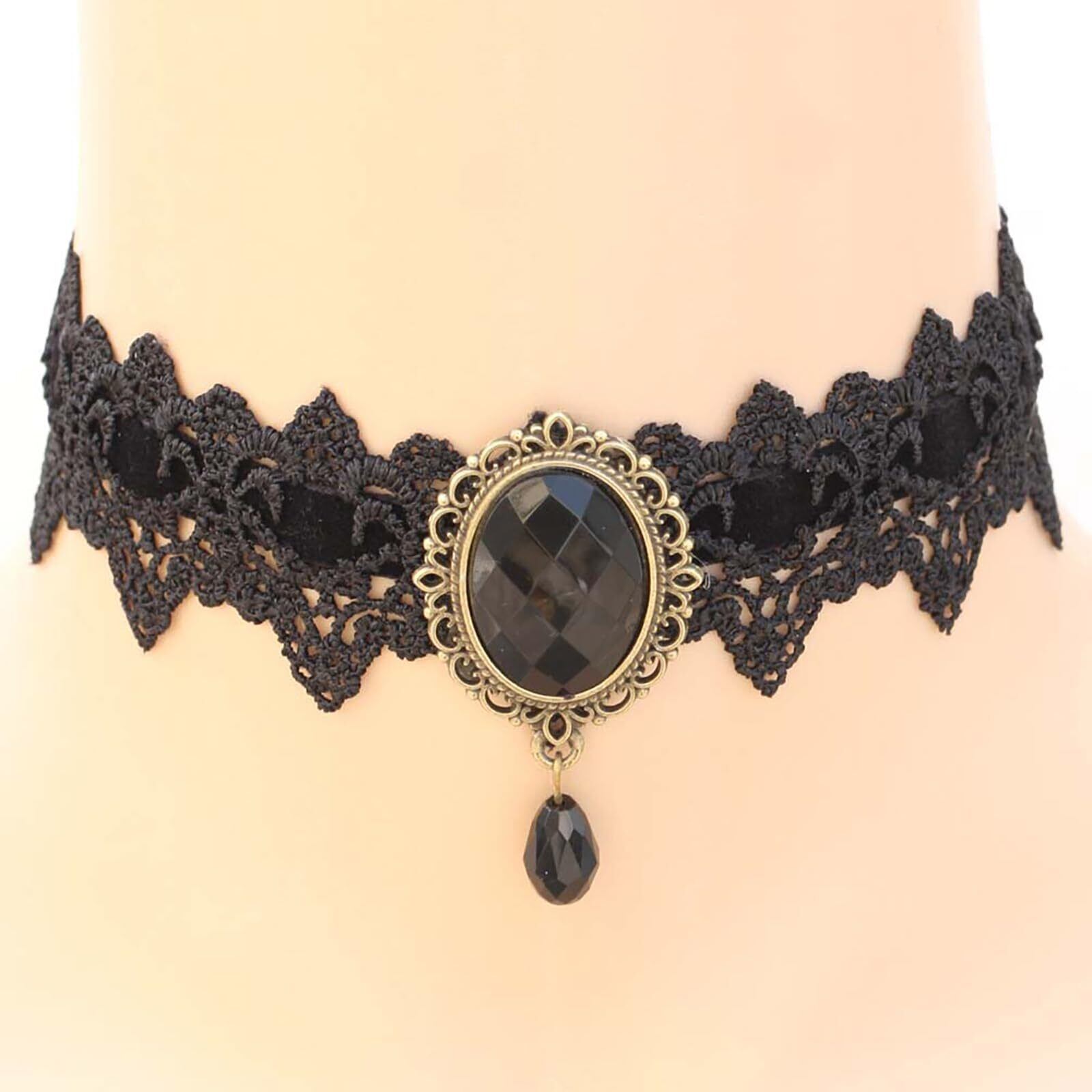 Qiubaoll ゴシック レースチョーカー ファッションストーン lolitaアクセサリー 学園祭 コスプレ ハロウィン 仮装
