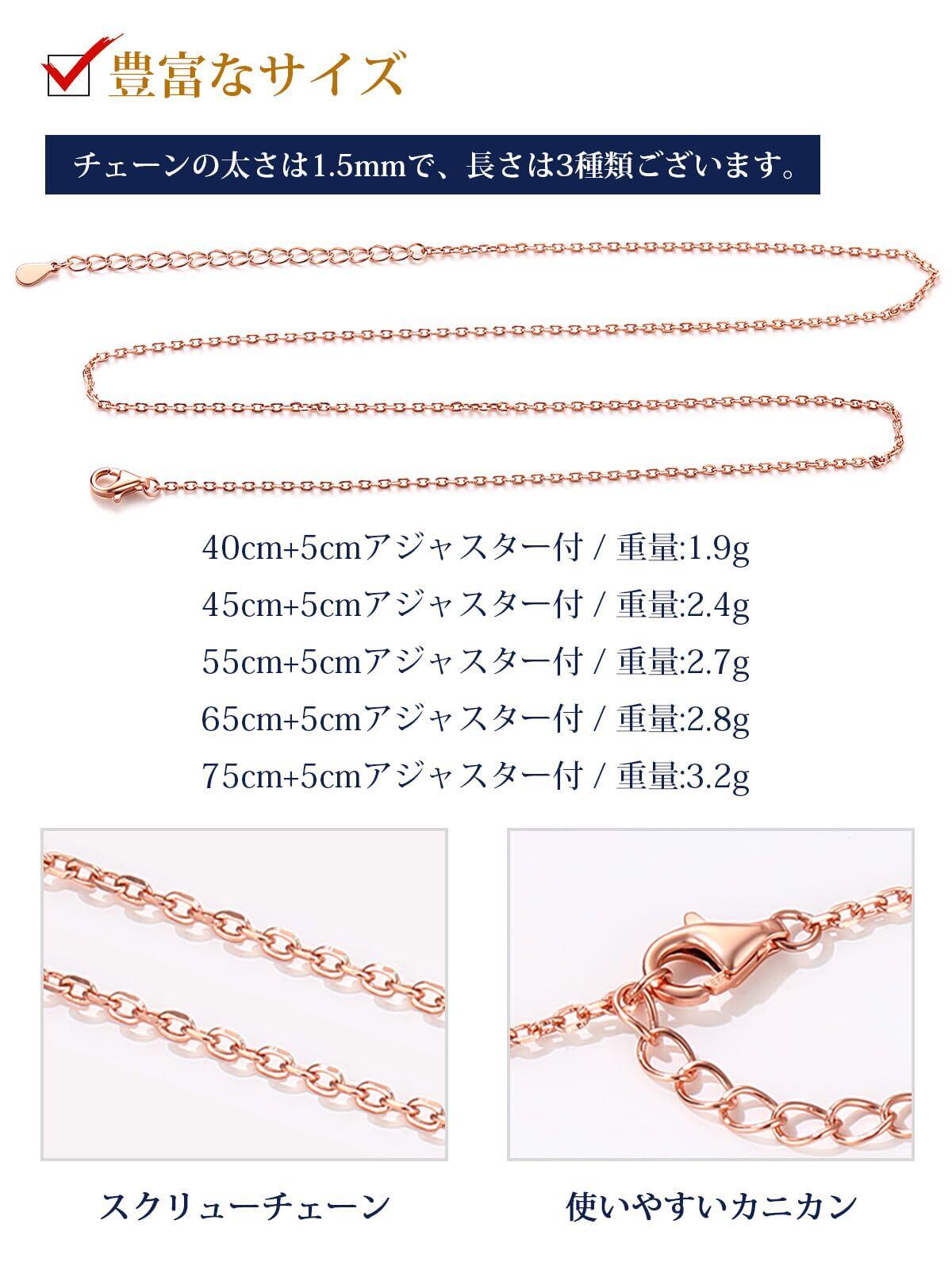 ✿[あずきチェーン] チェーンのデザインの中でも定番タイプで長年の人気を誇るあずきチェーンです。チェーンの太さは1.5mmで、長さは40cm/45cm/55cm+5cmアジャスター付きます。