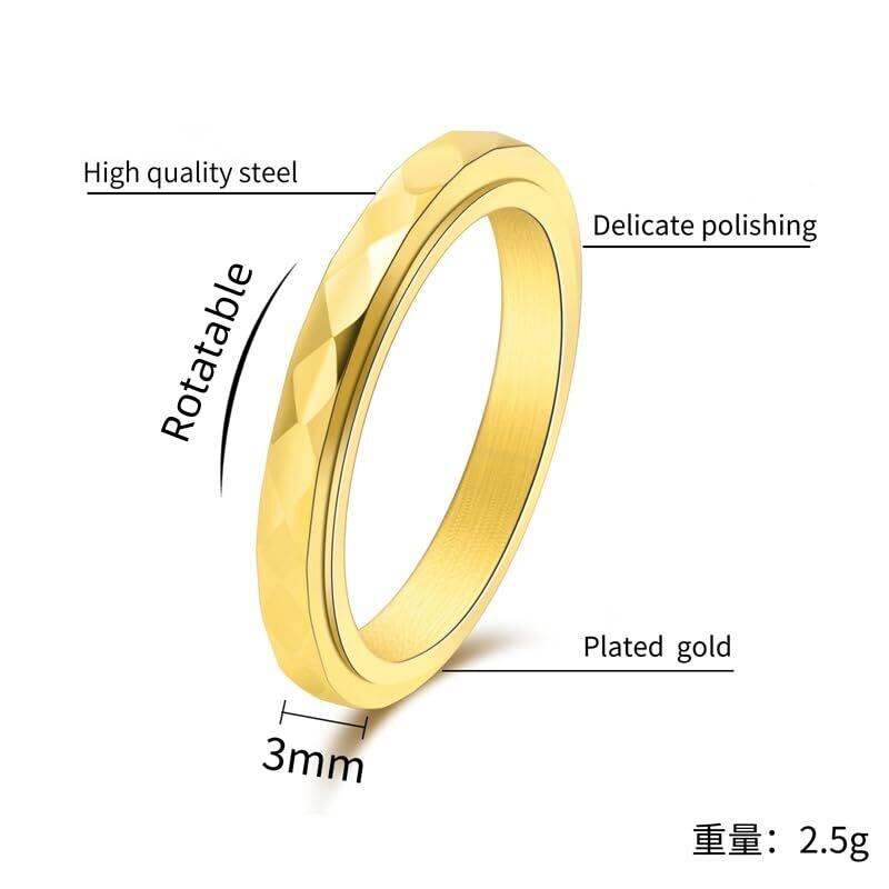 リング レディース ステンレス 細身 可動式 フリー回転 指輪 ミラーカット ゴールドカラー 食指リング ファッション シンプルアクセサリー プレゼント向け