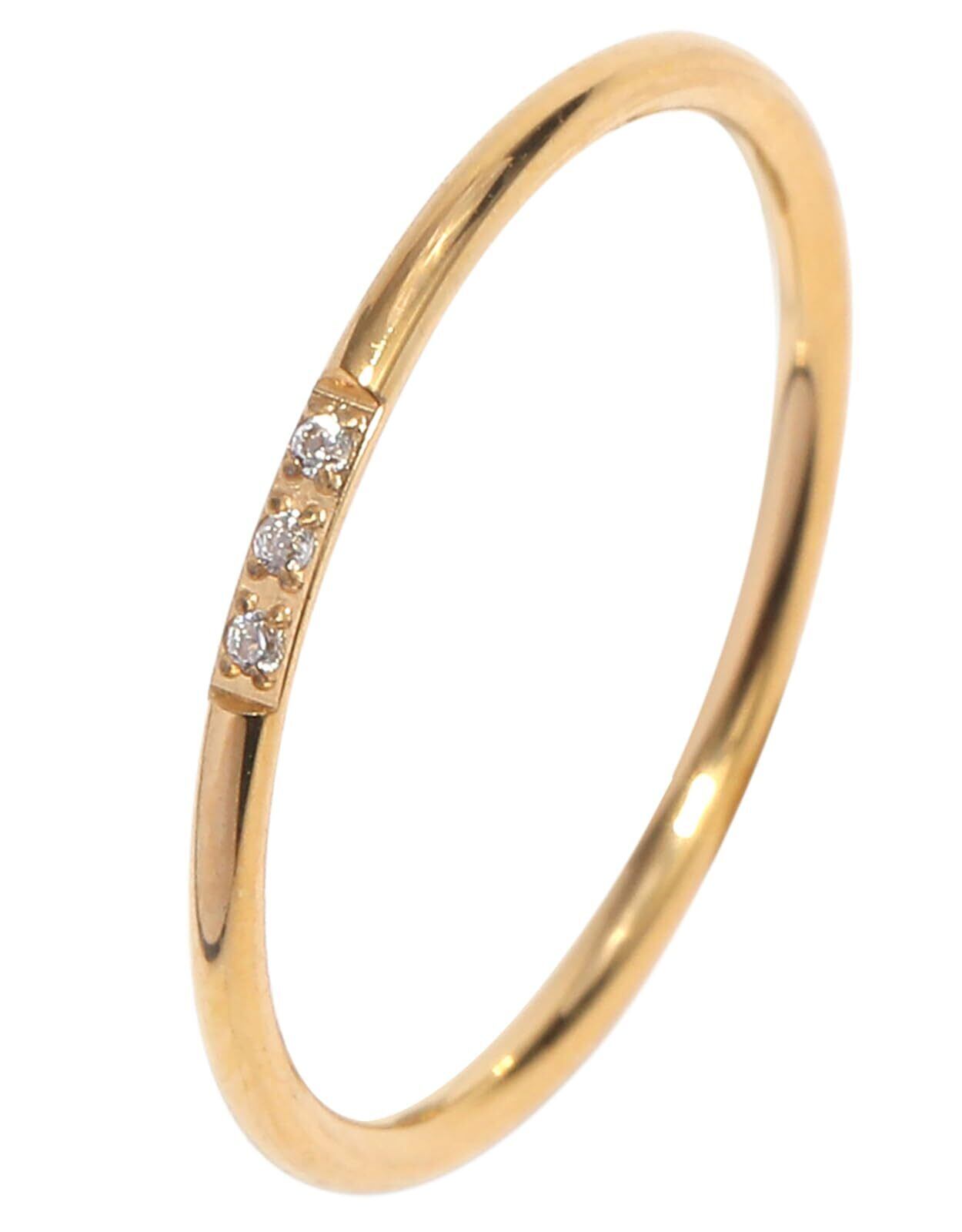 リング 指輪 金属アレルギー対応 ニッケルフリー 錆びにくい K18GP キュービックジルコニア ステンレス 1.2mm 華奢 レディース メンズ 4号~21号 czダイヤ 3粒タイプ