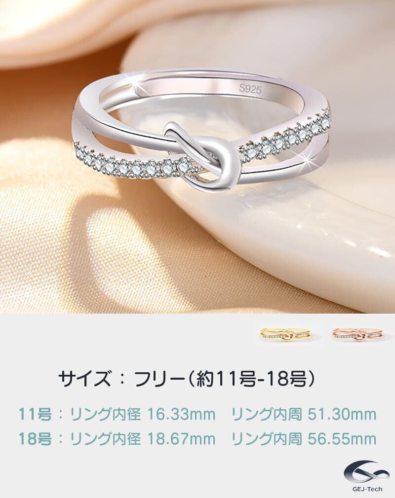 【新春セール】レディース ノットリング シルバー 指輪 フリーサイズ(11号-18号) リング ジルコニア ハーフエタニティ