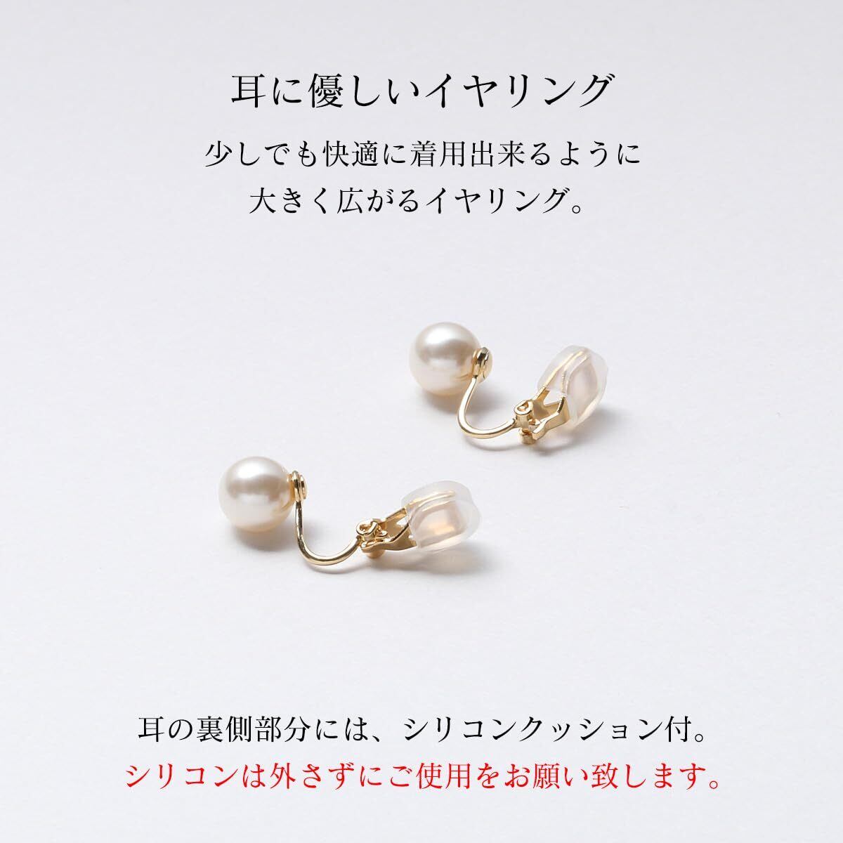 【耳に優しいソフトクリップの留め具】 留め具部分が大きく開き、長時間の着用でも痛くなりにくいソフトクリップ式。耳にあたる部分はシリコンでソフトにフィットします。