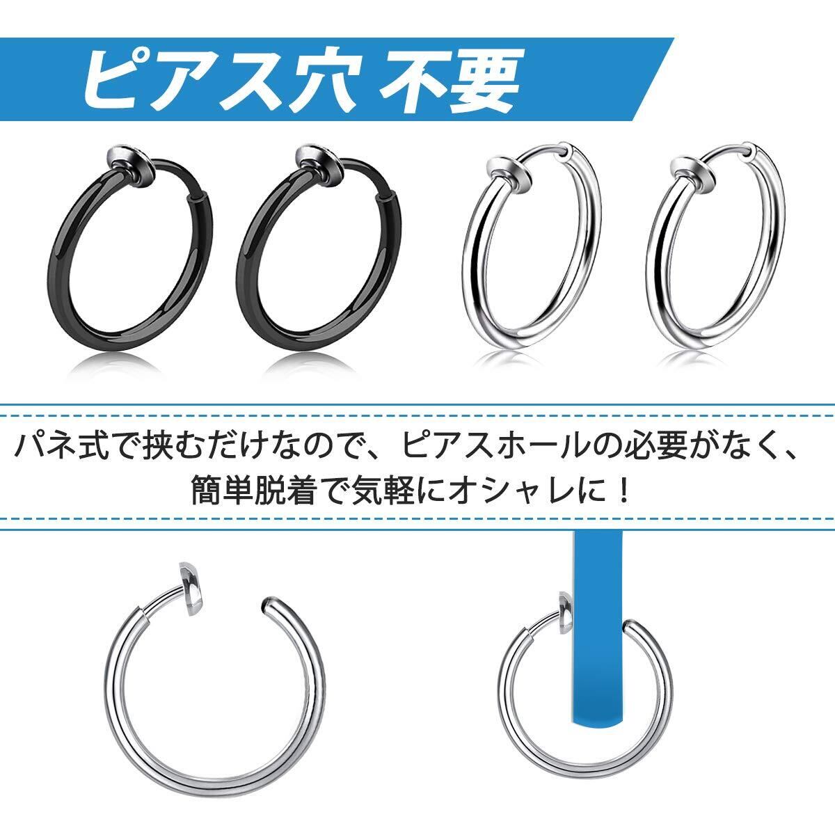 フェイクピアス メンズ レディース ジカルステンレス製 ノンホールピアス 金属アレルギー対応 アクセサリー 誕生日 記念 クリスマス プレゼント ユニセックス イヤーカフ シルバー&ブラックUmiwe