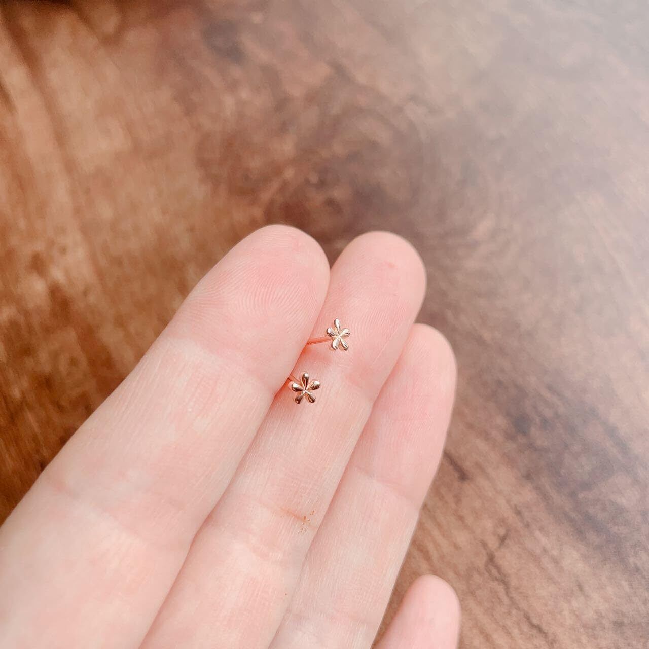 繊細で愛らしい4mmサイズのフラワーピアス。小ぶりながらも上品な存在感があり、さりげなく耳元を彩ります。カラーはイエローゴールド、ピンクゴールド、シルバー、ブラックの4色展開。それぞれ異なる魅力を持ち、コーディネートに合わせて選べます。シンプルなデザインで、カジュアルからフォーマルまで幅広いシーンに対応。軽いつけ心地で、デイリー使いにも最適です。お花モチーフは可憐さを引き立て、さりげない華やかさをプラス。大切な方へのギフトにもぴったりなアイテムです。