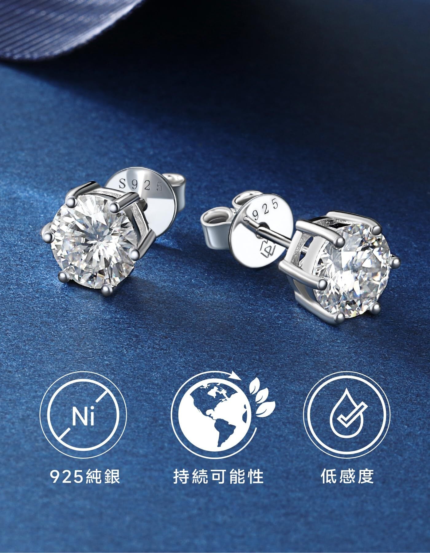 MomentWish モアサナイト ピアス レディース メンズ シルバー925 金属アレルギー対応 スタッドピアス 0.6-4 カラット 人工ダイヤモンド Dカラー VVS1 人気記念日 プレゼント 4/5/6.5/7.5/8mm