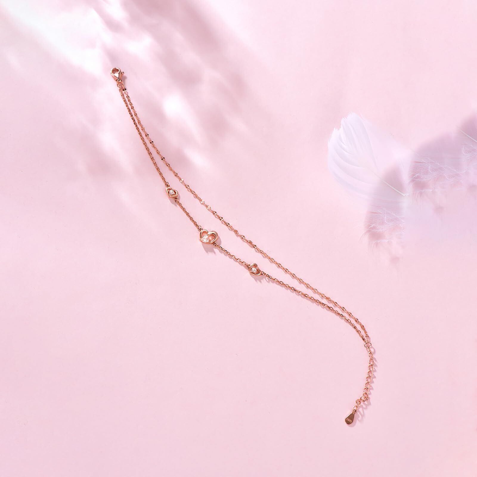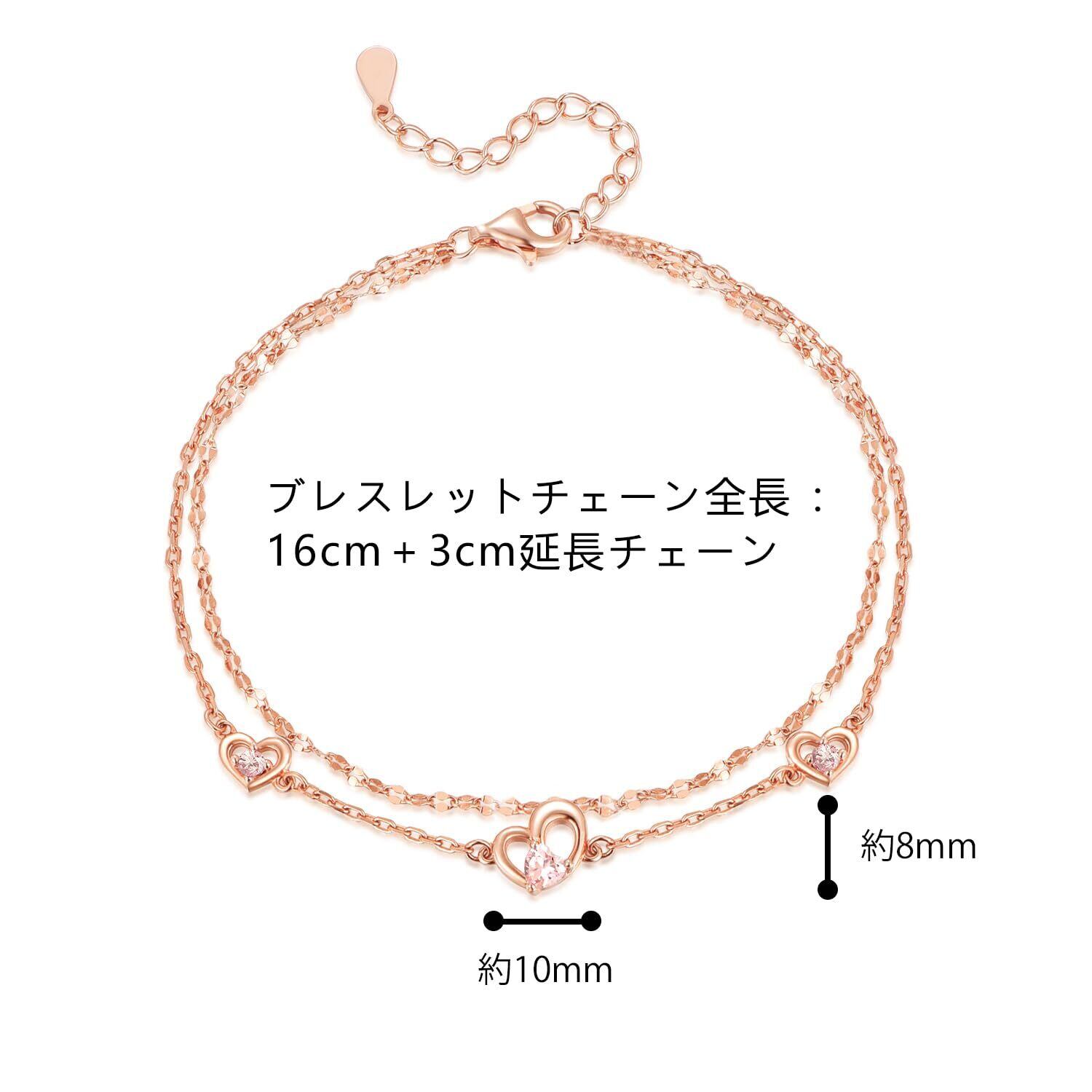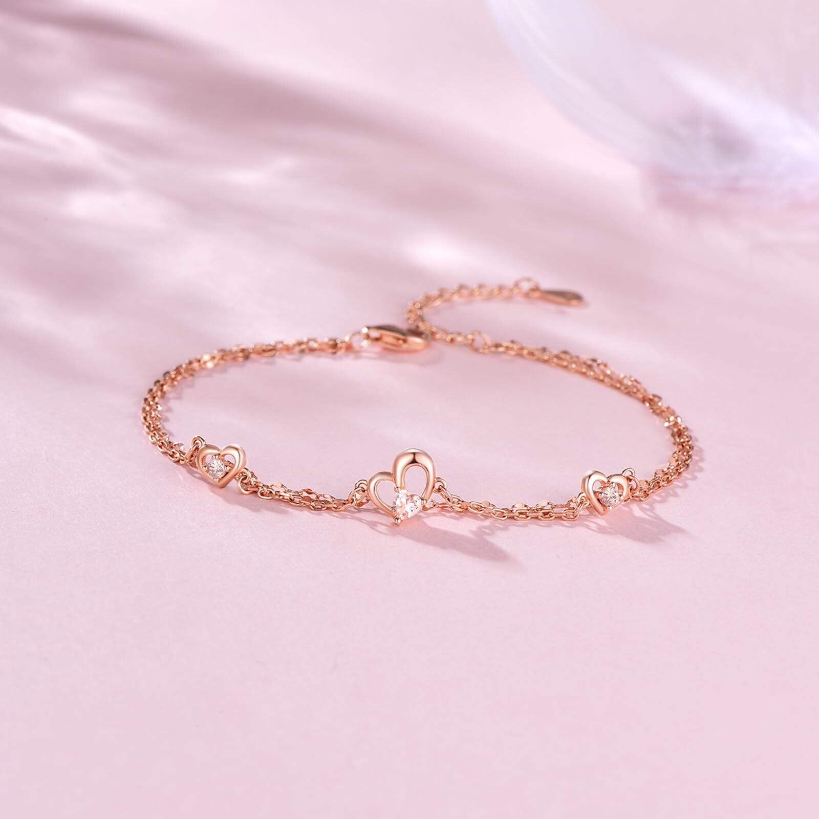 ハートブレスレット:3つのハートは「過去・現在・未来」の永遠の愛を象徴。ダブルチェーンデザインで立体感があり、より安心して着用できます。普段使いからデートまで幅広く使えるブレスレットです