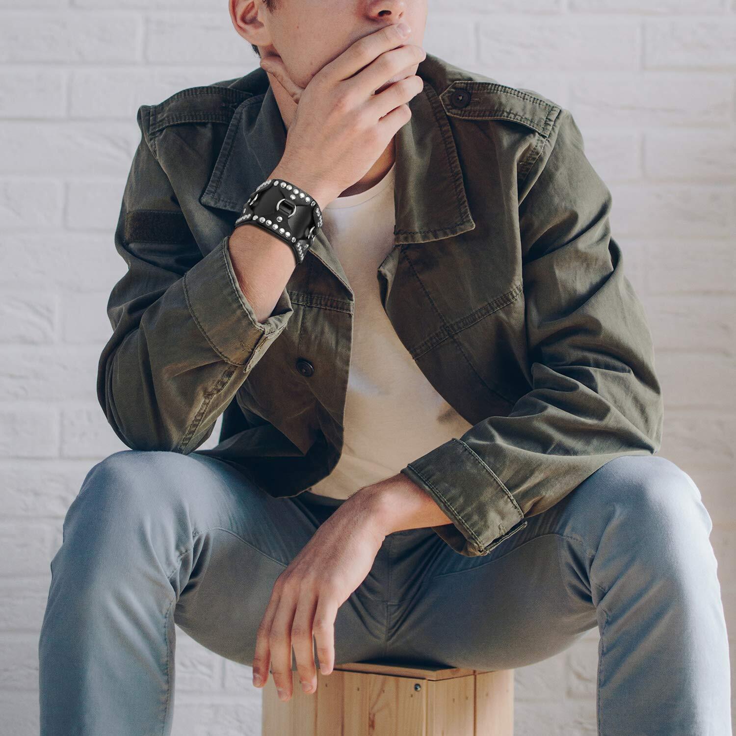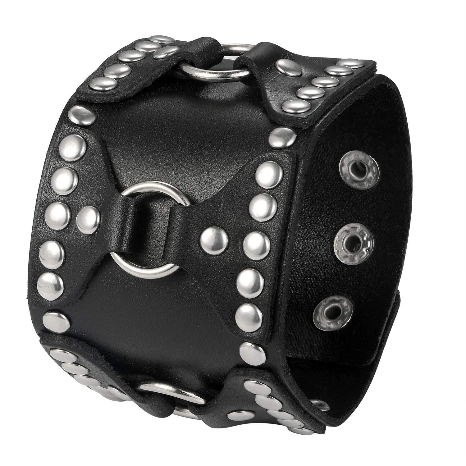 JEWELRYWE ブレスレット パンク バングル リベット 腕輪 ベルト 幅広 人気 ロック バッグ ゴシック ファッション アクセサリー 誕生日 記念日 親友 彼氏 ギフト