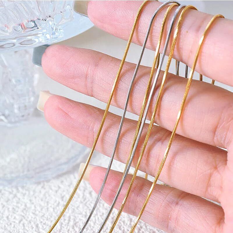 普段使いに最適なシンプルスネークチェーンアンクレット。メンズにもレディースにも人気の高いデザインでどなたにでもおすすめできるシンプルなチェーンアンクレット!スネークチェーンでそのままでもお持ちのアンクレットと重ねづけしてもしっかりデザイン性のあるチェーンです。フォーマルスタイルにもカジュアルスタイルにも相性がよく、シーンを選ばずどんな時でも着用OK!カラーバリエーションはゴールドとシルバーの2色展開で太さは1mm 2mm、長さは各種取り揃えてあり、自分の好みにあったサイズを選択可能。自分の足首周りの長さにプラス1cmのチェーンの長さをおすすめします。きれいな輝きで存在感を強調しオシャレにコーディネートすることができます。韓国系ストリートファッションとの相性抜群で、これは外せない1つは必ず持っておきたいアンクレット!
