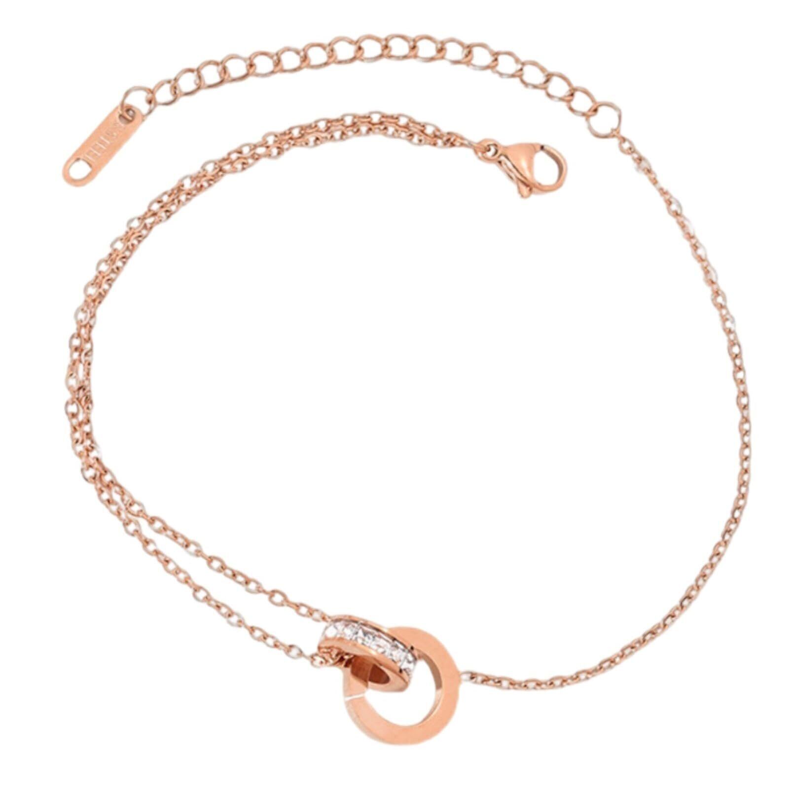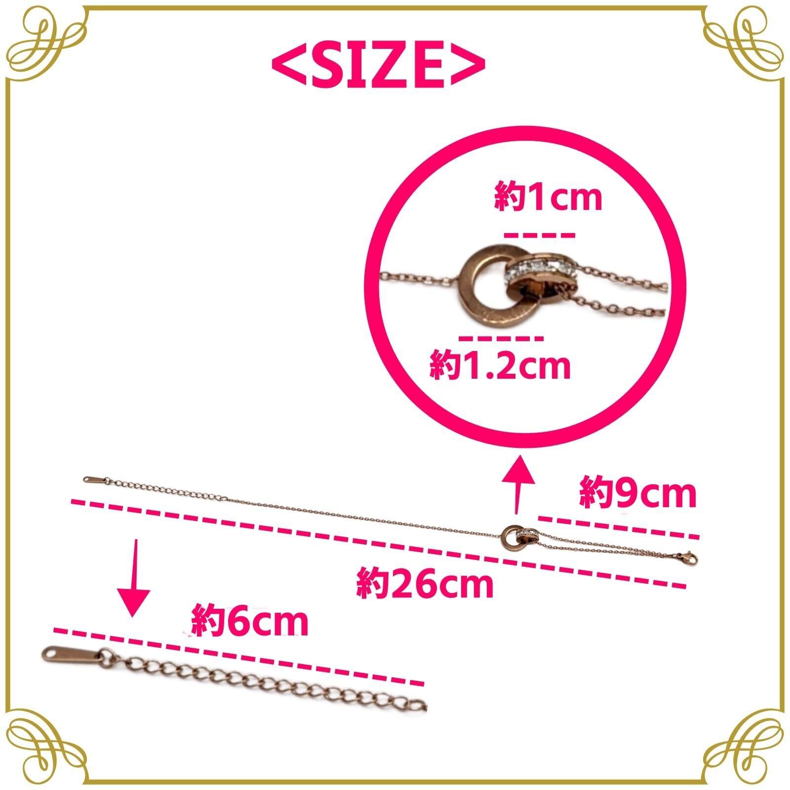 アンクレットのチャーム部分は小さくて、かわいいリングが2つ重なったデザイン!1つのリングはきらきら装飾のデザイン、 もう1つはローマ数字が刻印されているデザインで足元を華麗に演出してくれます。 歩くたびに足首をさり気なくキラキラと輝かせてくれるアンクレットです。