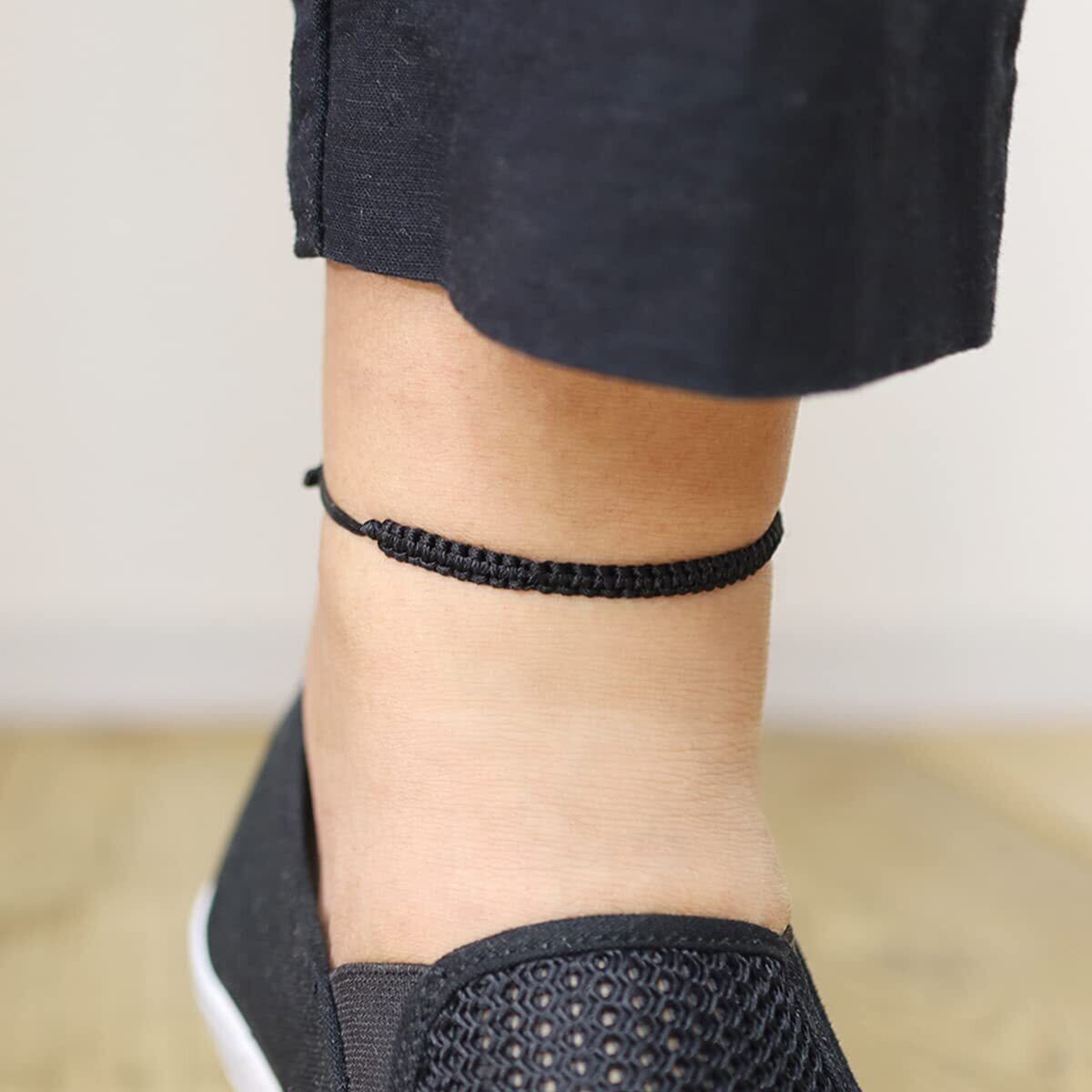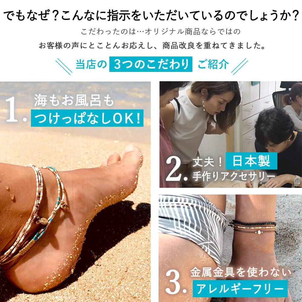【お風呂にもつけっぱなしOK】お風呂や海でつけっぱなしでも、ビーズの変色なし。付けたり外したりしなくて良いのでノーストレスな付け心地です。(商品サイズ:ブラック内周34cm ブラック内周30cm※サイズ調整可能)