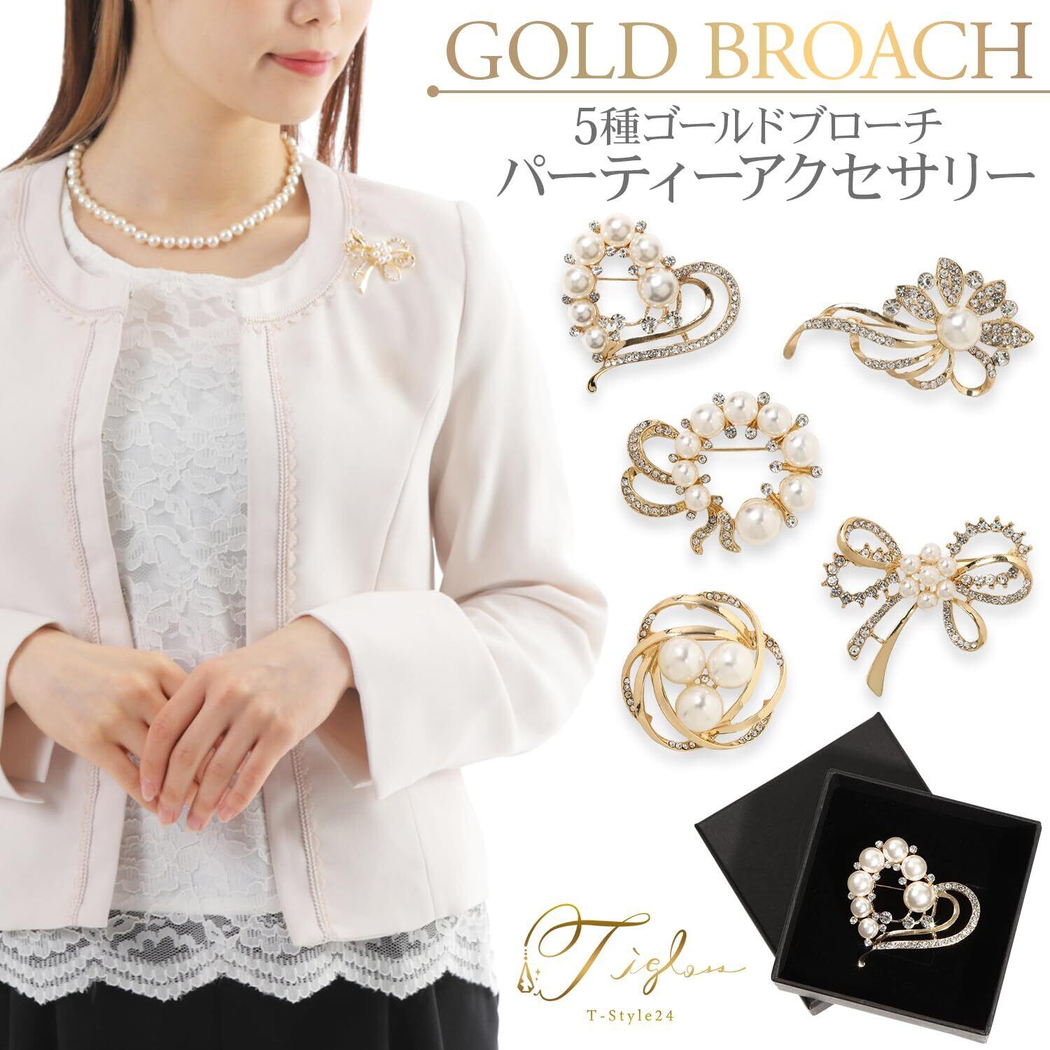 TIGLOSS ブローチ コサージュ パール 卒業式 入学式 セレモニー ゴールド フォーマル ジャケット スーツ ギフト 結婚式 お呼ばれ ドレス パーティー ピン おしゃれ 5種 専用BOX付