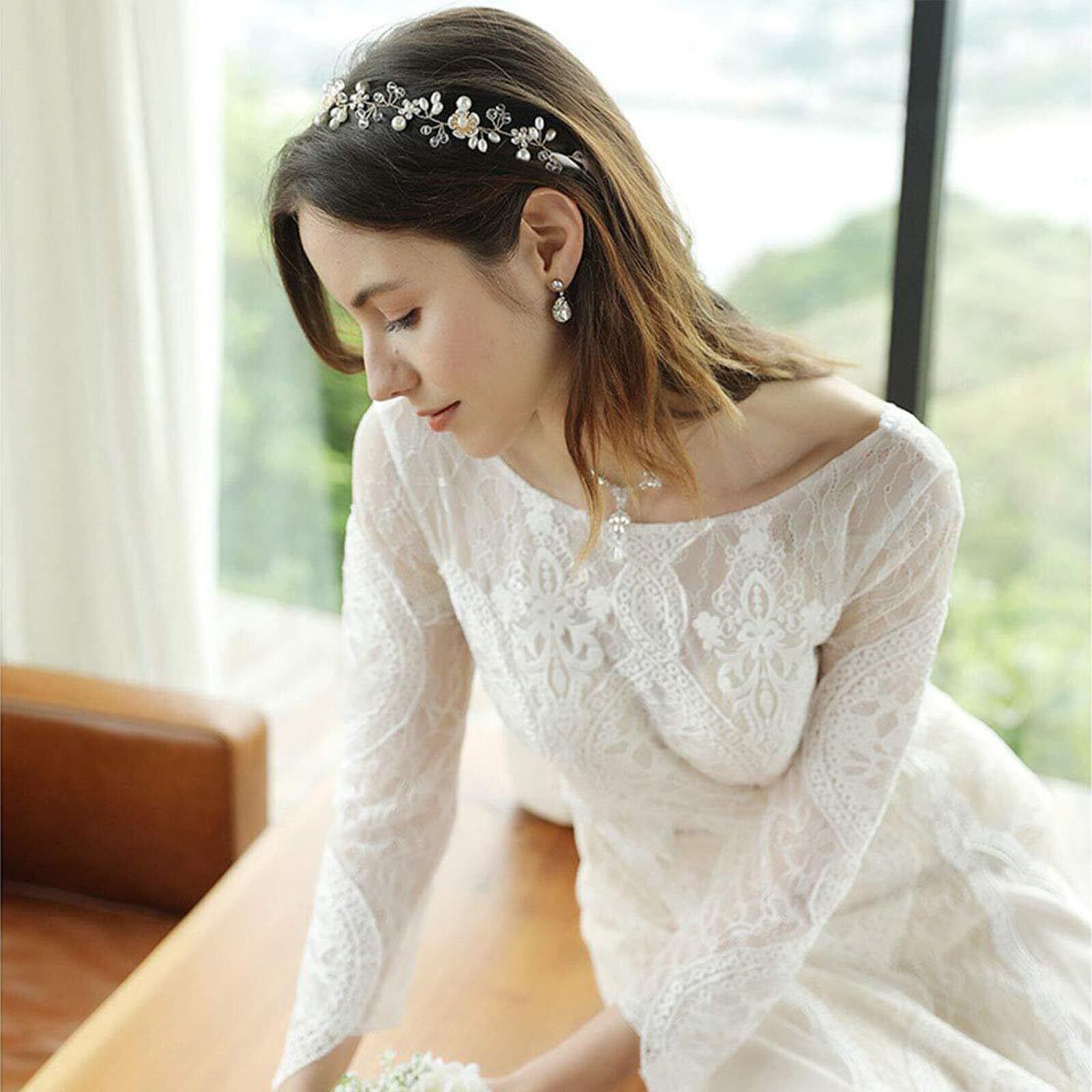 美しくエレガント:パールとクリスタルが柔らかく輝く輝きを放ち、花の形がロマンチックな雰囲気を添えます。全体のフォルムはエレガントで精巧で、結婚式などの大切なシーンにふさわしい、身につける人の気品を高めます。