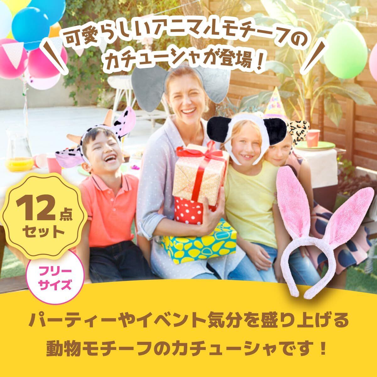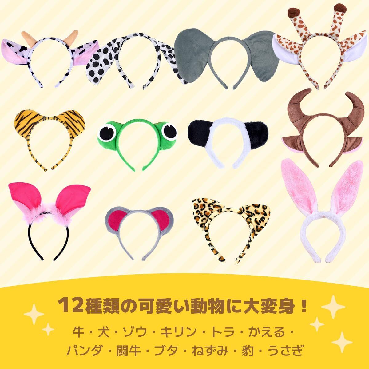 多様性に富んだ動物の種類: イヌ、トラ、ウサギ、キリン、ウシ、ネズミ等の12種類が1セットに含まれています。それぞれの動物ごとに特徴的な耳の形状や模様が再現されており、自然な見た目とディテールにこだわっています。この多様性により、様々なイベントやシーンで活用することができます。
