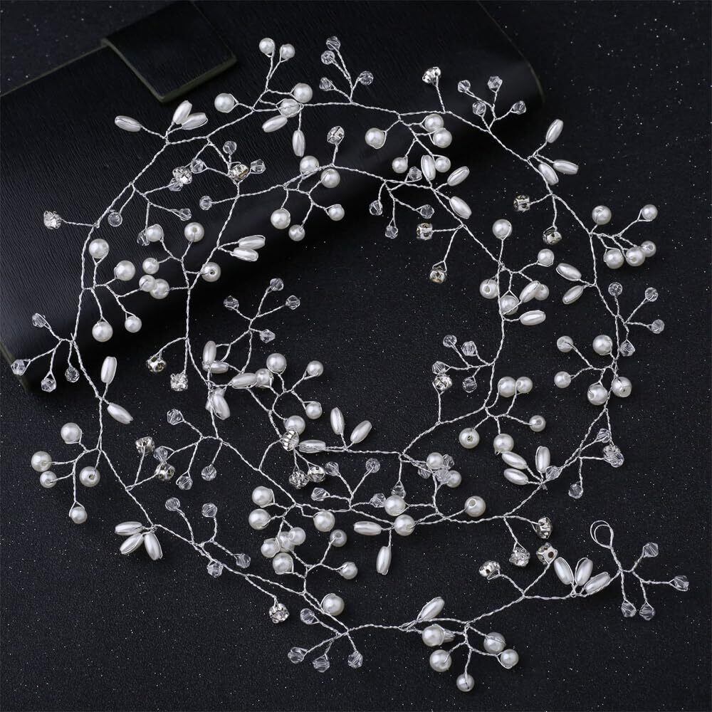 【ゴージャスなデザイン】:このゴージャスなヘアアクセサリーは、人工真珠+ラインストーン+合金。きらめくラインストーンと真珠のようなフェイクパールは、女性らしさを高める立体感のあるエレガントで素敵なヘアアクセサリーです。それは洗練された魅力的に見えます。日常の着用や交換に適しています。
