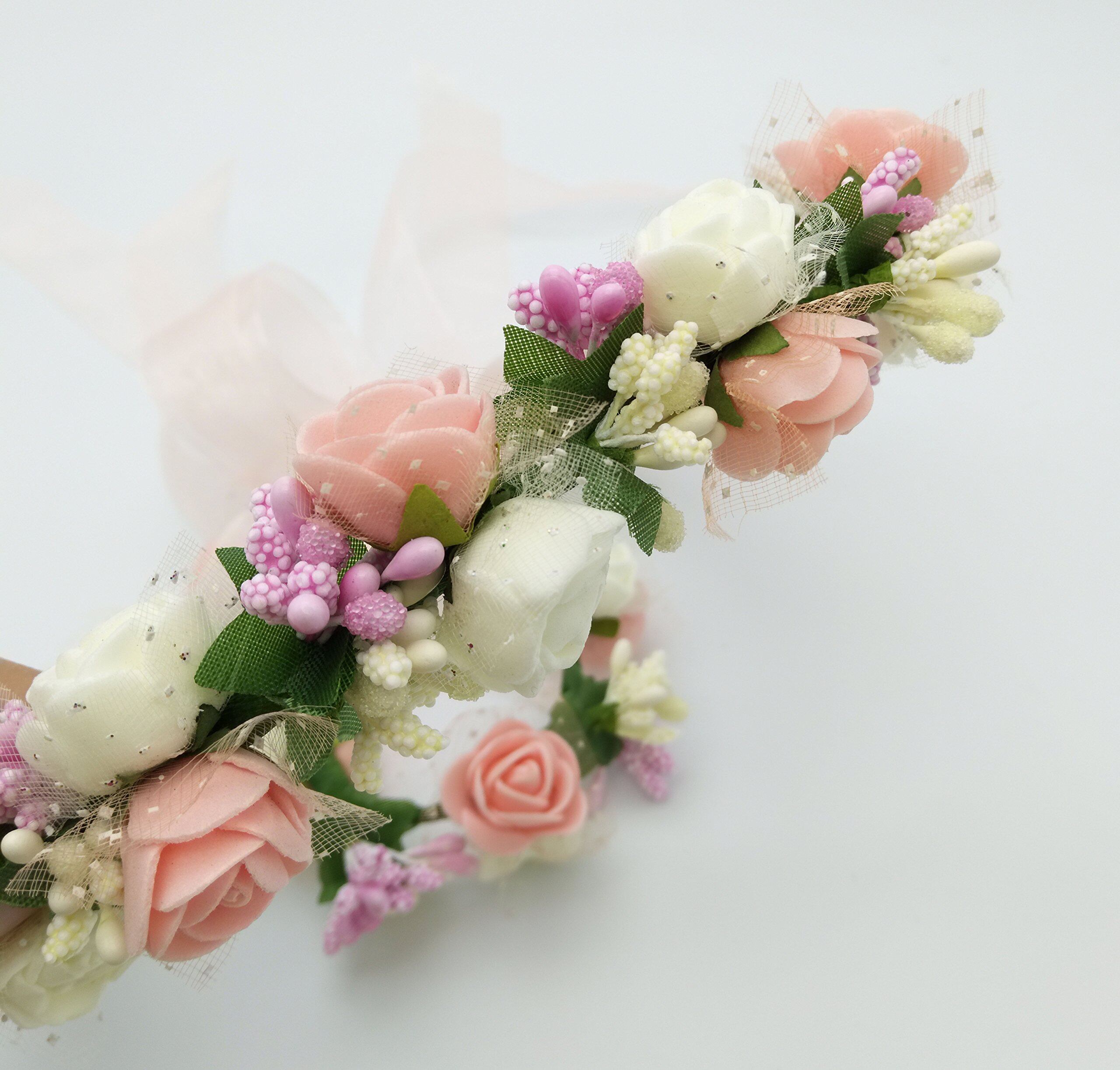 【新春セール】ハナ(HANA)女の子憧れの ロマンチックな お花の冠 結婚式 写真撮影などにも 花かんむり リストレット (腕輪) 2点 セット 髪飾り ヘアーアクセサリー