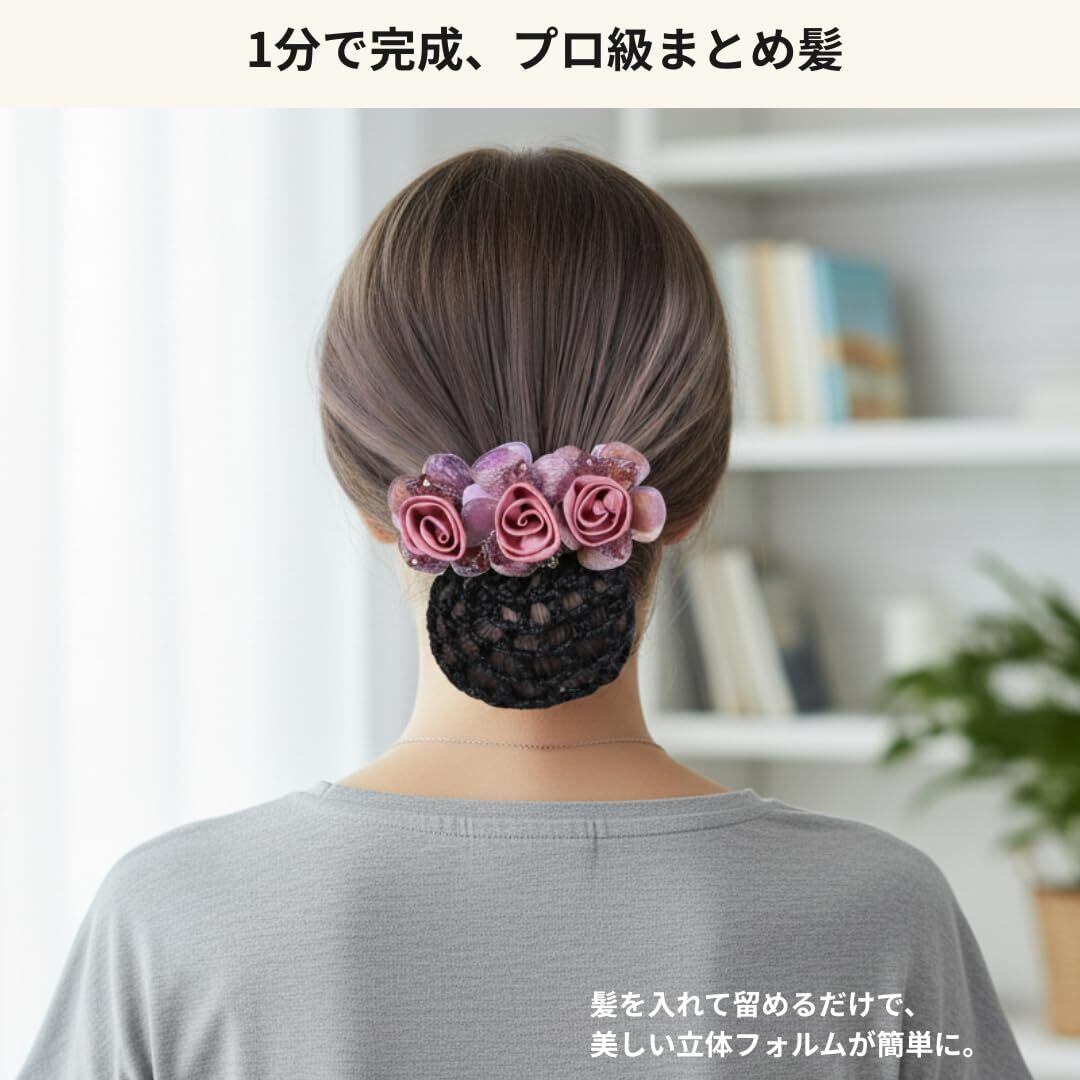 ②【誰でも簡単プロ級まとめ髪】 髪をネットに入れて留めるだけで完成。 1分で美しいシニヨンスタイルができるので、忙しい朝にもぴったり。