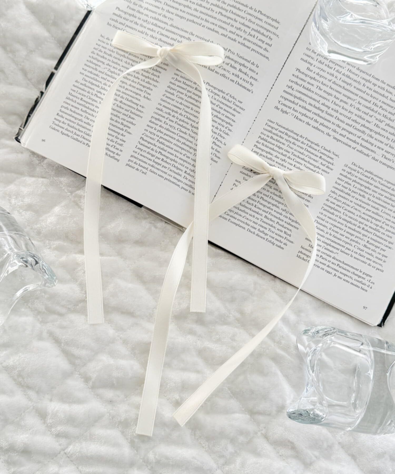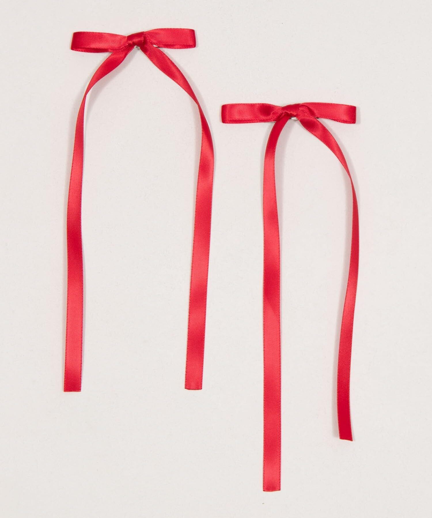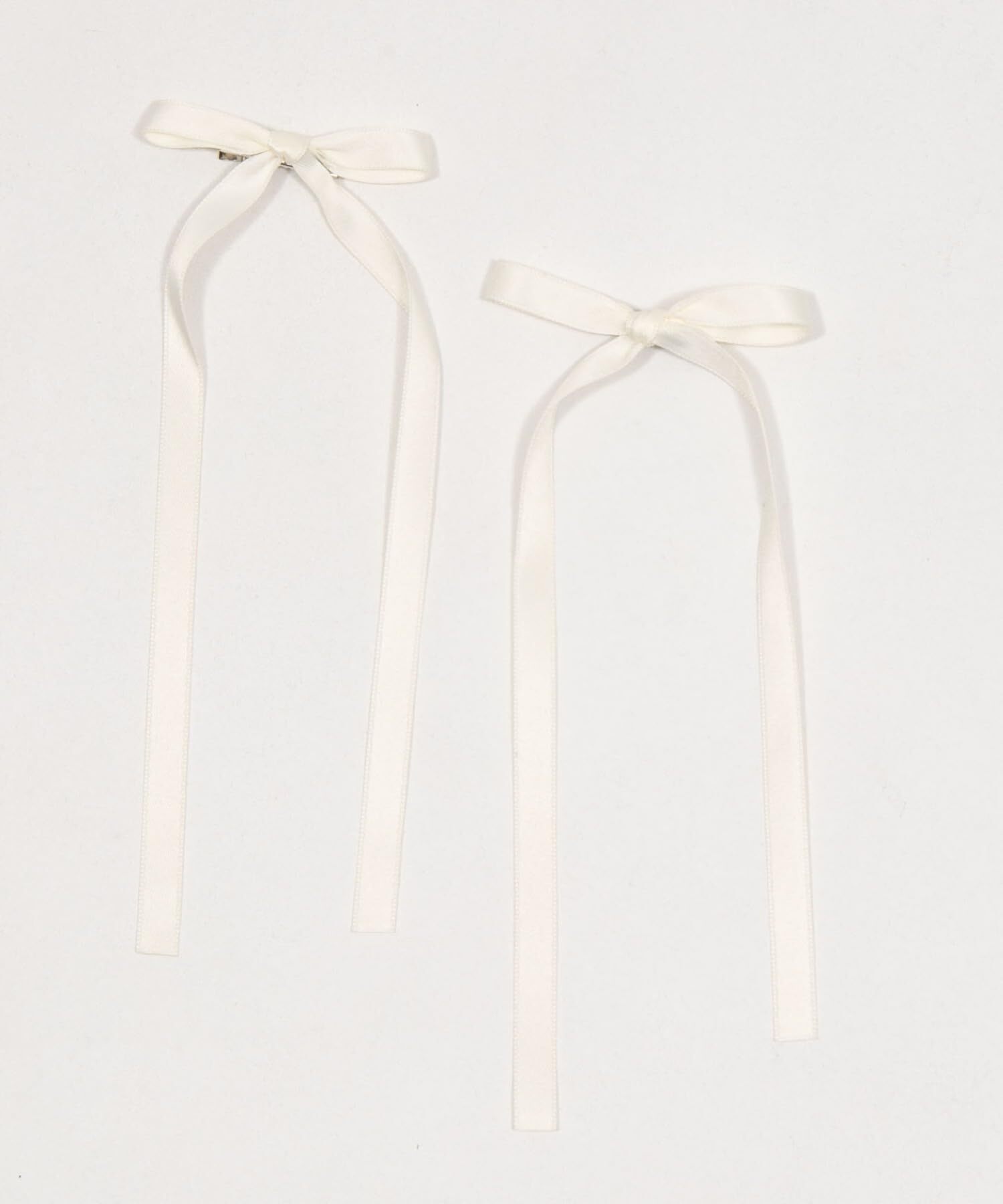 細身のリボンにロングデザインが映える、ガーリーな印象のリボンクリップ2個セット。