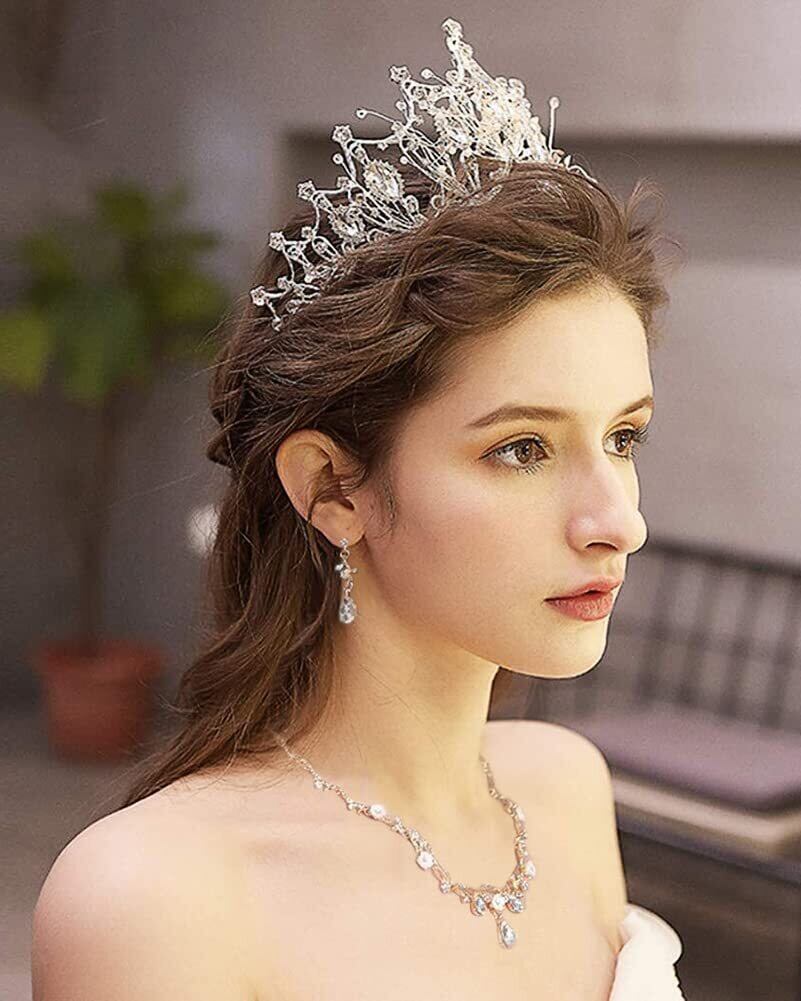 ティアラ ウエディング 髪飾り 王冠 クラウン crown ブライダル イヤリングとネックレス付き 花嫁 姫系 記念写真 アクセサリー ヘアアクセサリー 結婚式 披露宴 発表会 イベント パーティー