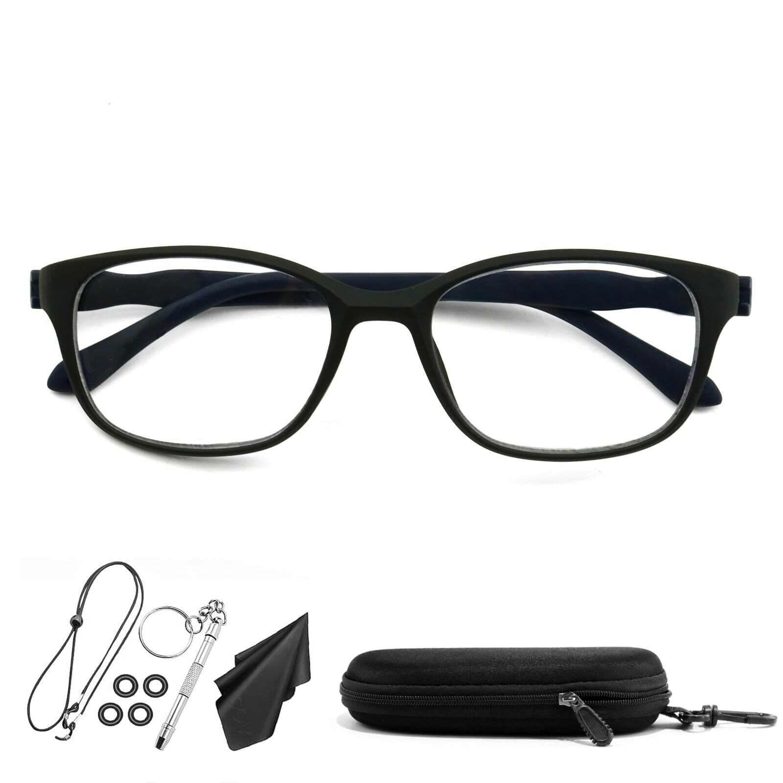 豊かで実用的なパッケージ► 1、携帯用メガネケース。ケースにはフックが付いているので、外出時にケースをバッグに掛けることができ、老眼鏡が必要な時にいつでも簡単に取り出して使用できる。2、眼鏡拭き。3、ストラップ。メガネコードは、メガネをかけるときに固定したり、不要なときに首からぶら下げたりするのに使える。4、ミニドライバー。ドライバーは老眼の修理だけでなく、どんな小さなもののネジの修理にも使える。5、メガネロック*4。メガネのイヤーフックは柔らかいシリコン製で、装着中は小さいので邪魔にならず、装着後は下を向いて本を読んでも老眼鏡がずれることはない。