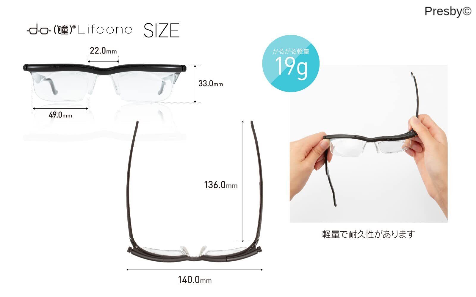 【在庫セール】ドゥーライフワン 度数調整付き老眼鏡 近視 遠視 老眼 めがね 度付き 度数調整メガネ 度数調節 ドゥー ライフワン メンズ レディーズ プレスビー (ブラック)