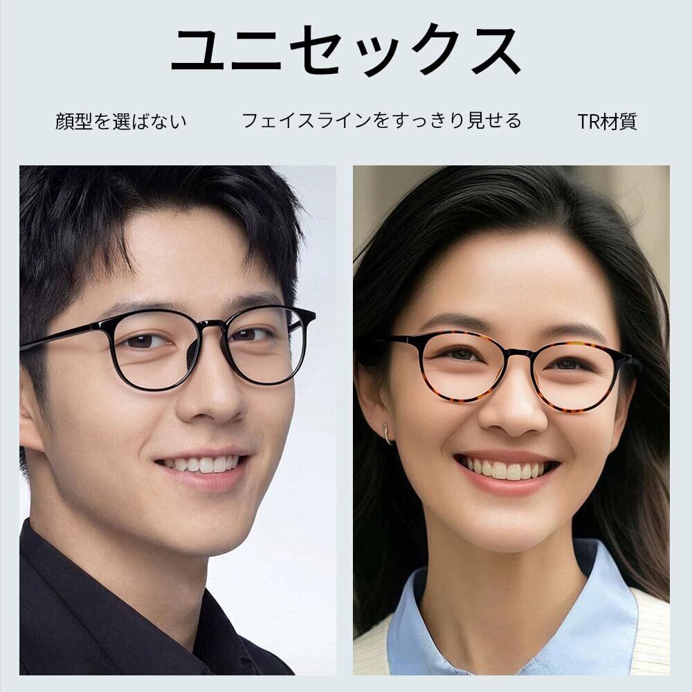 【掛けやすい超軽量素材】フレームは超軽量、柔軟性、形状記憶性質がある人気素材TR90樹脂採用、重さわずか17gで付けているのを忘れるくらい軽い。(※老眼鏡1.0レンズが入った状態の重さ)