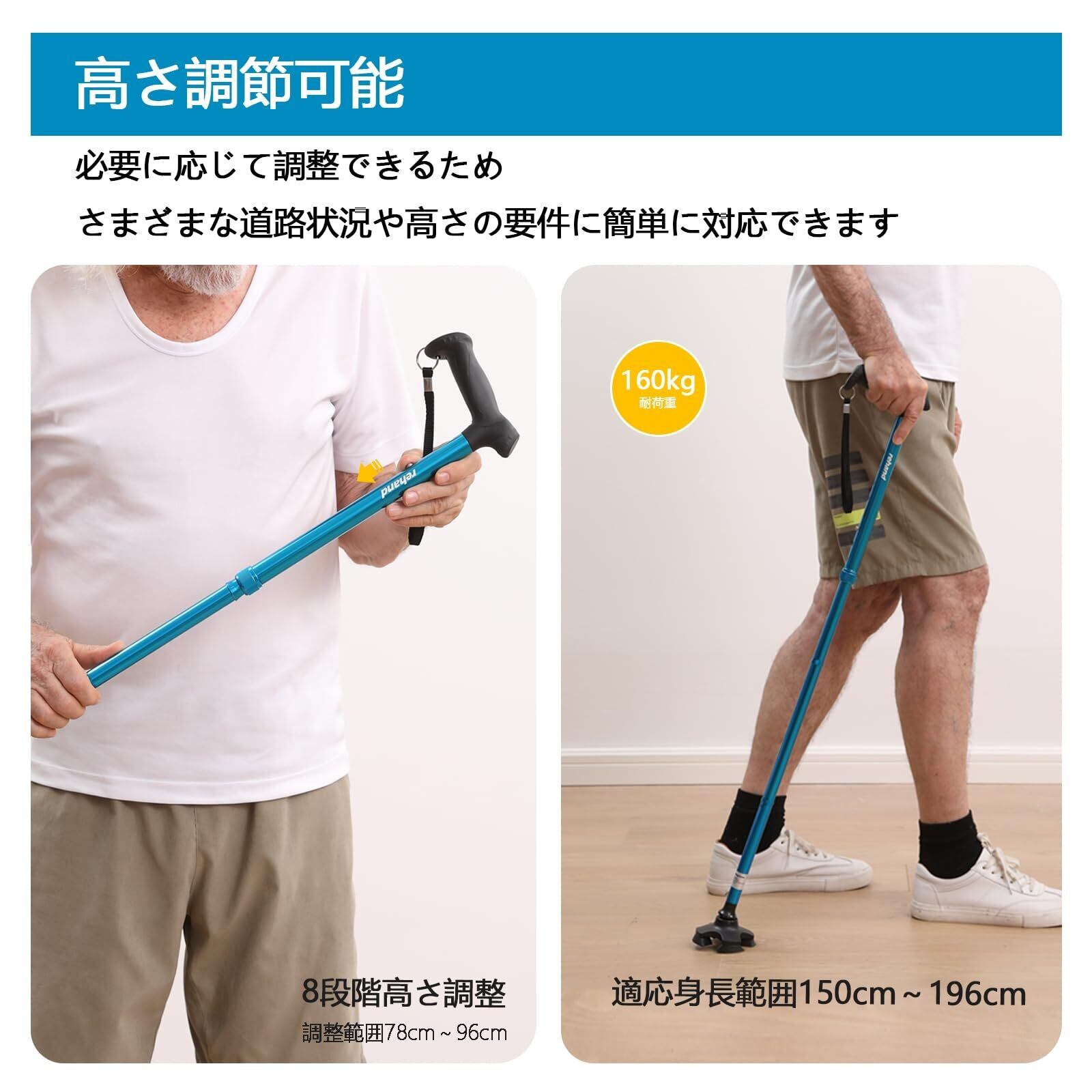 【新着商品】Rehand 折りたたみ式自立式 4点杖 つえ 杖 男女用 軽量 高齢者 8段階調節 - 敬老の日・母の日・父の日プレゼント