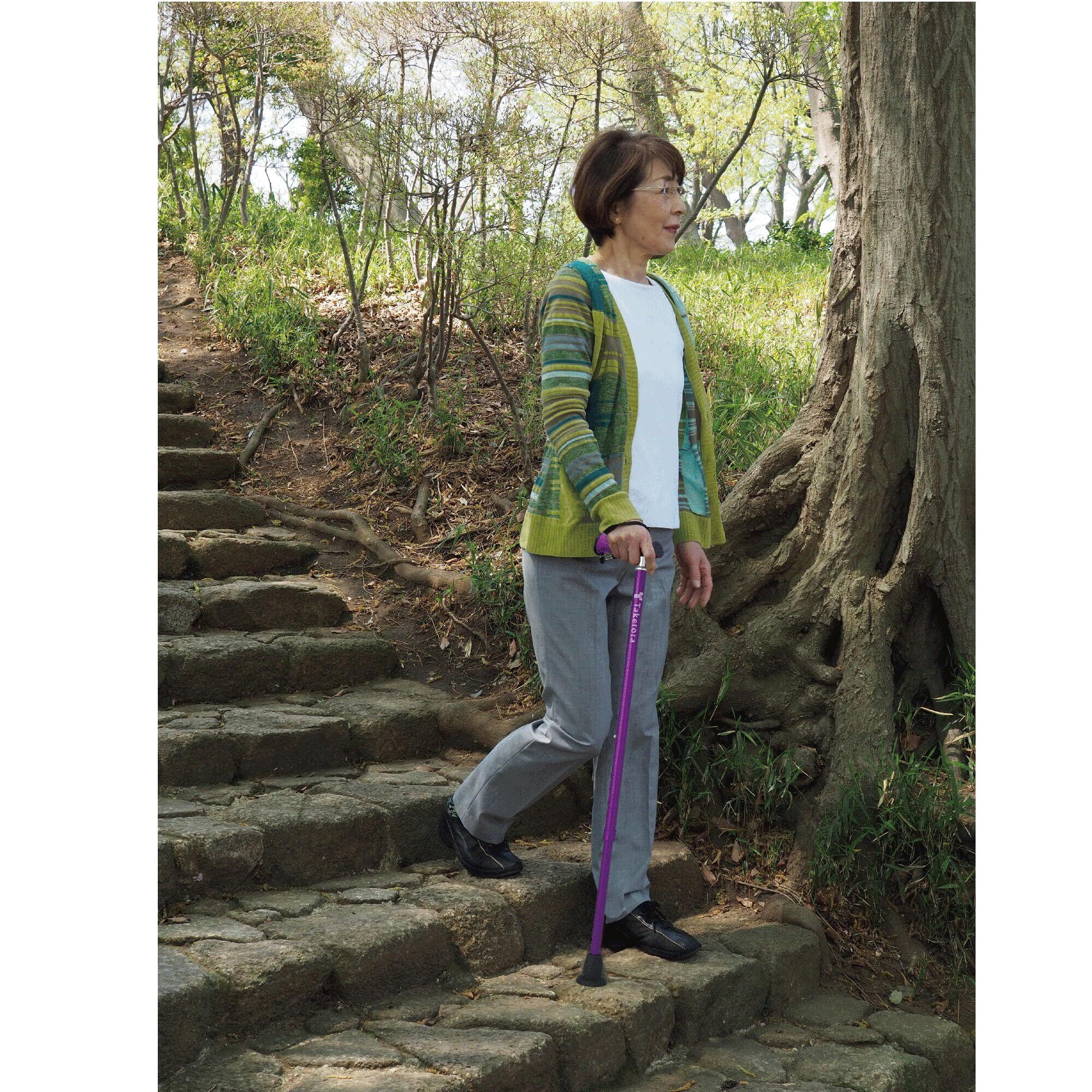 接地面が広く、食いつきの良い、弾力のある円盤状の杖先ゴムで安定感を確保します。