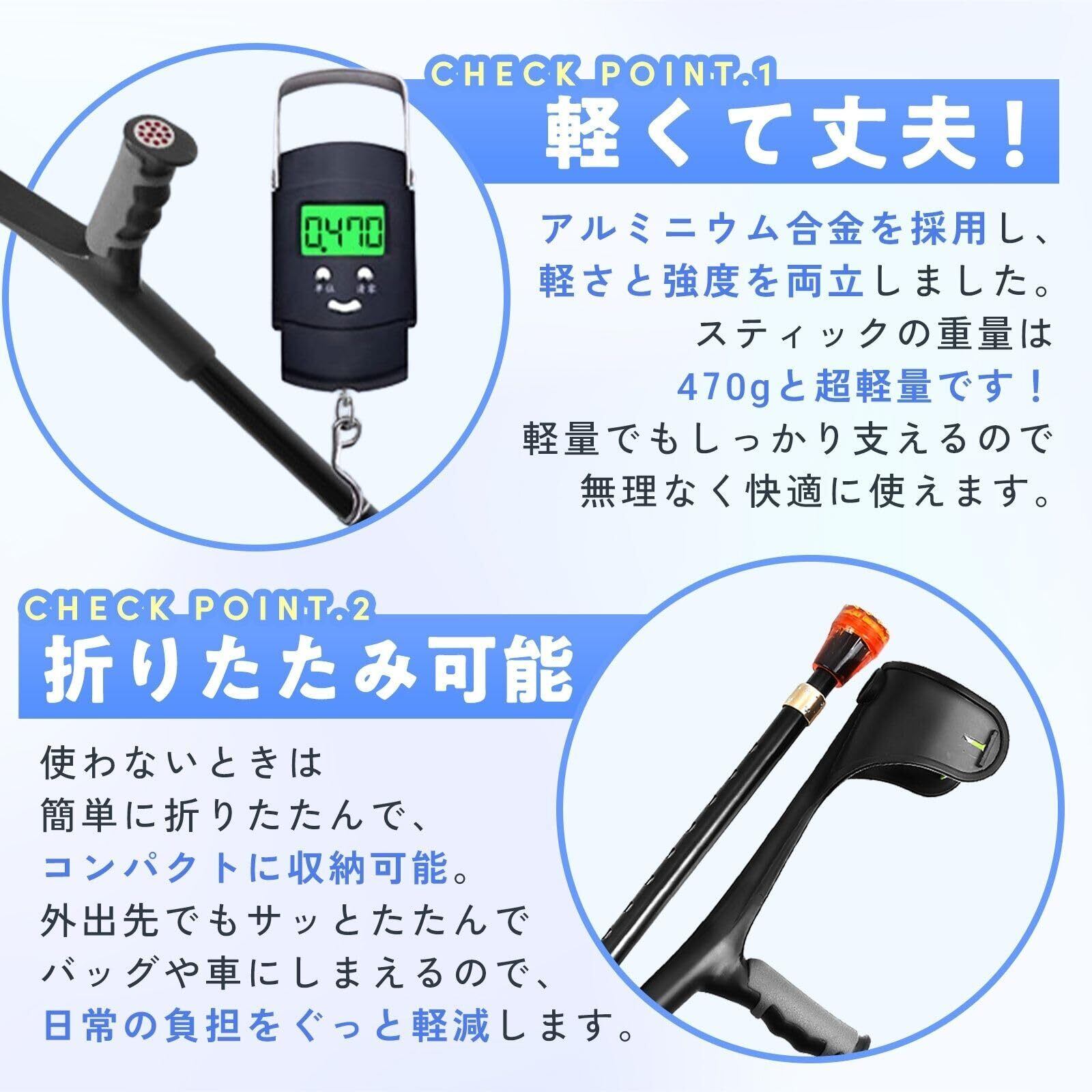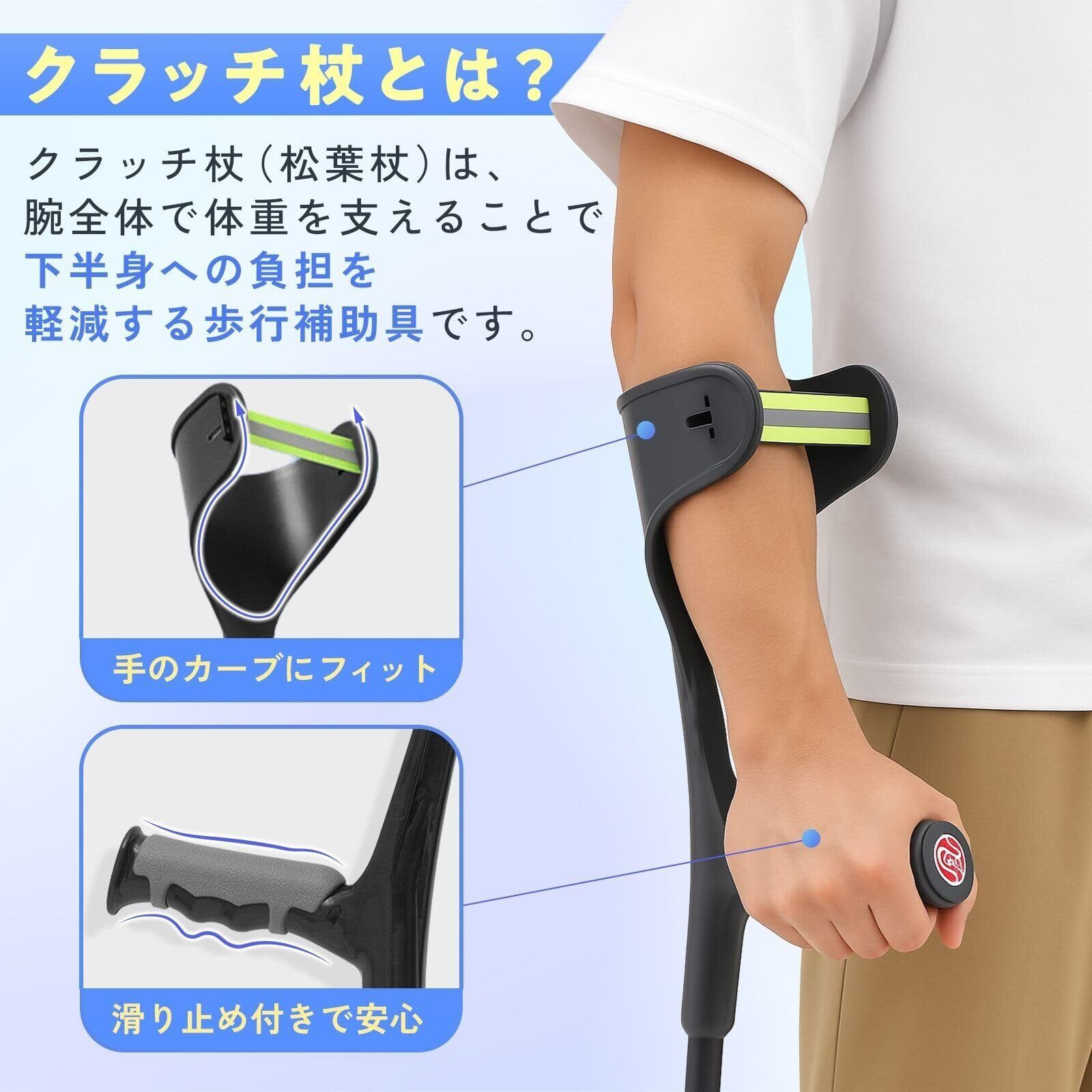 クラッチ杖 松葉杖 ロフストランドクラッチ 折りたたみ 折り畳み ステッキ アルミニウム 滑り止め 反射材 軽量 介護 歩行補助 リハビリ 適応身長145~190cm