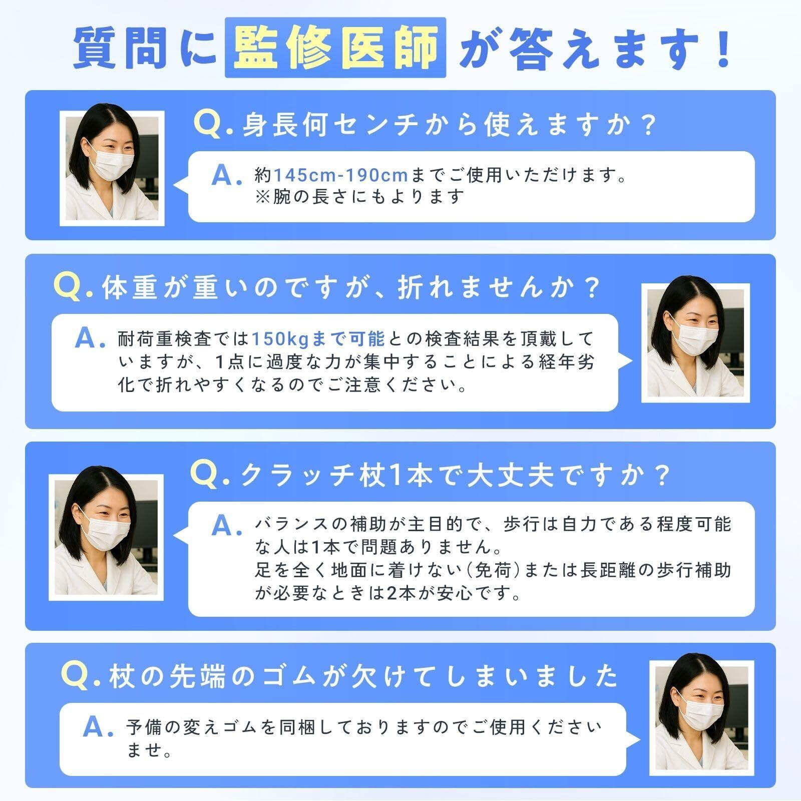 【医師監修】 クラッチ杖は患側の足に荷重をかけられない場合、距離を歩く場合は2本のご使用をお勧めします。