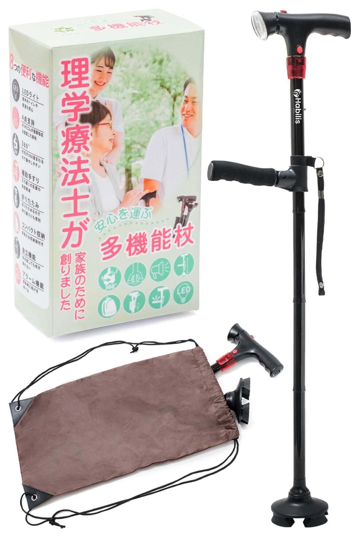 Habilis 杖 男性用 女性用 折りたたみ杖 折り畳み つえ 4本足 4点杖 多機能ステッキ 介護 高齢者 歩行補助杖 自立式 ライト SGマーク