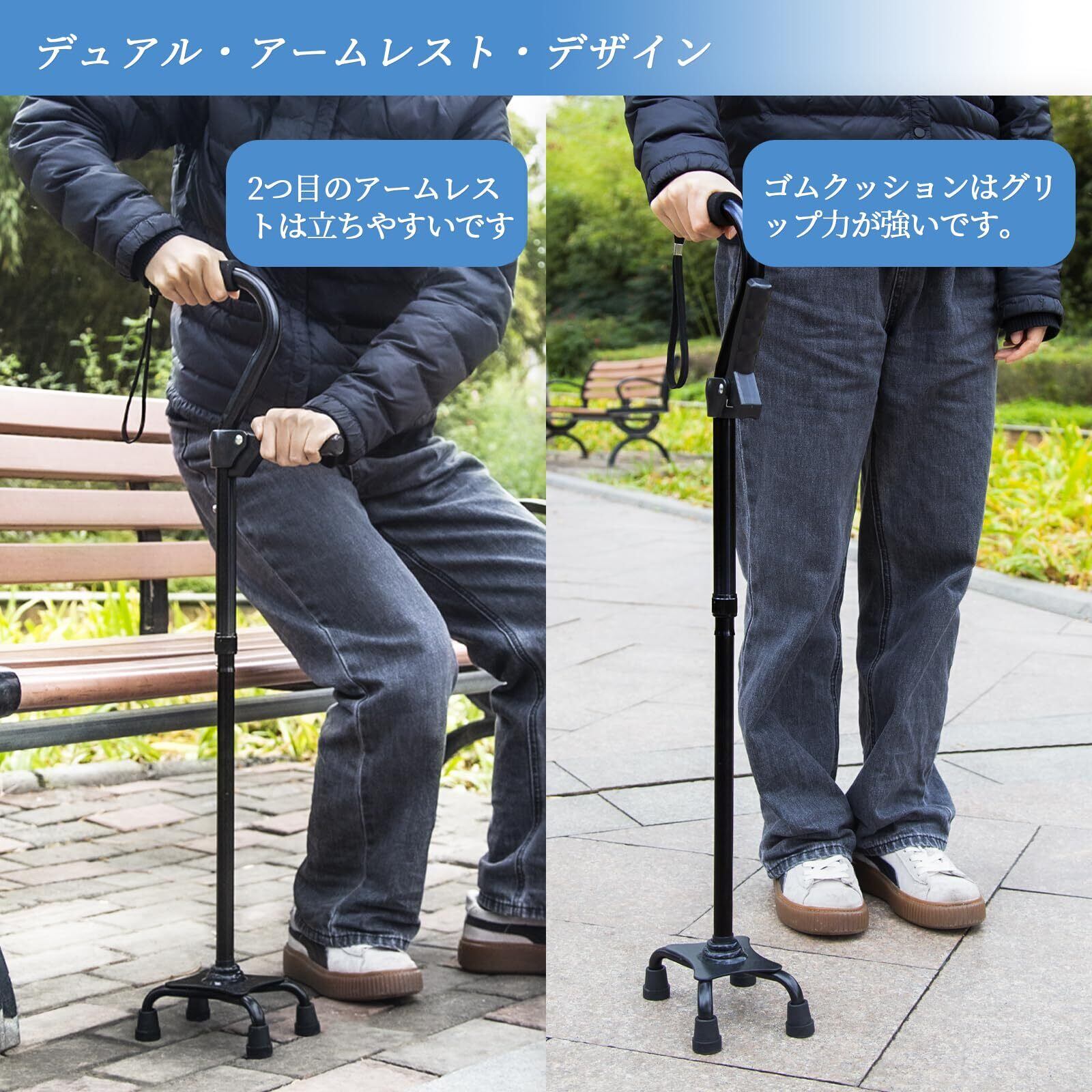 KingPavonini杖 4点介護用 軽量 自立式 伸縮式 アルミ製 長さ調節可能 多点杖 ステッキ 歩行補助 高齢者 リハビリ つえ 男性用 女性用 敬老の日