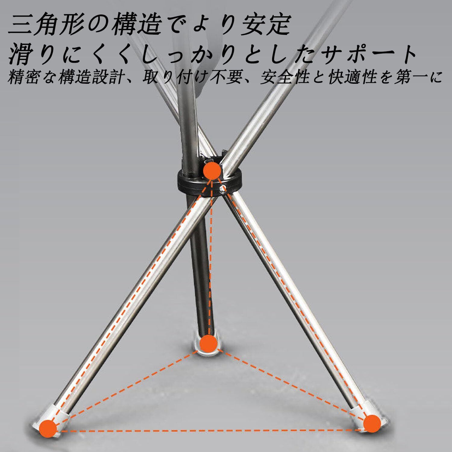 【安定性と滑り止め】このステッキチェア 小型 軽量 コンパクトは、展開すると底部が三角形になり、より安定感と耐荷重性を高めます。さらに、折りたたみいす 軽量の脚部には滑り止めカバーが付いており、滑りにくく安全に使用できます。