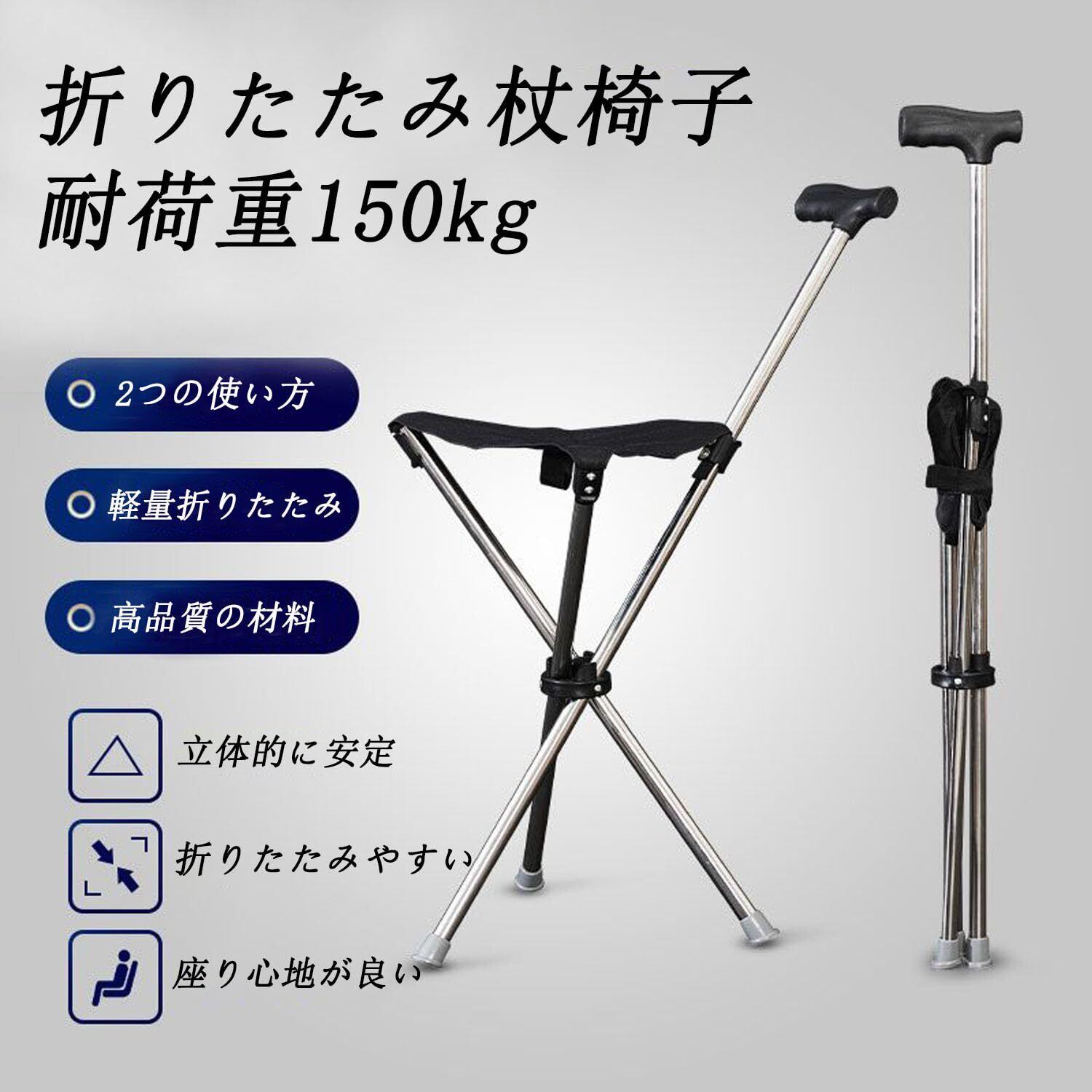 スタンディングチェア 折りたたみイス 軽量 ステッキチェア 折りたたみ椅子 小型 簡易 コンパクトチェア 登山杖 折り畳み 伸縮 3脚 ワンポールチェア 椅子付き杖 高め 3本足 行列待ち時間 アウトドア ポータブル ストック 座れる つえ 高齢者 登山 持ち歩き 散步 携帯椅子 滑り止め 持ち運び 立ったまま 座れる 旅行 遠足 携帯 用