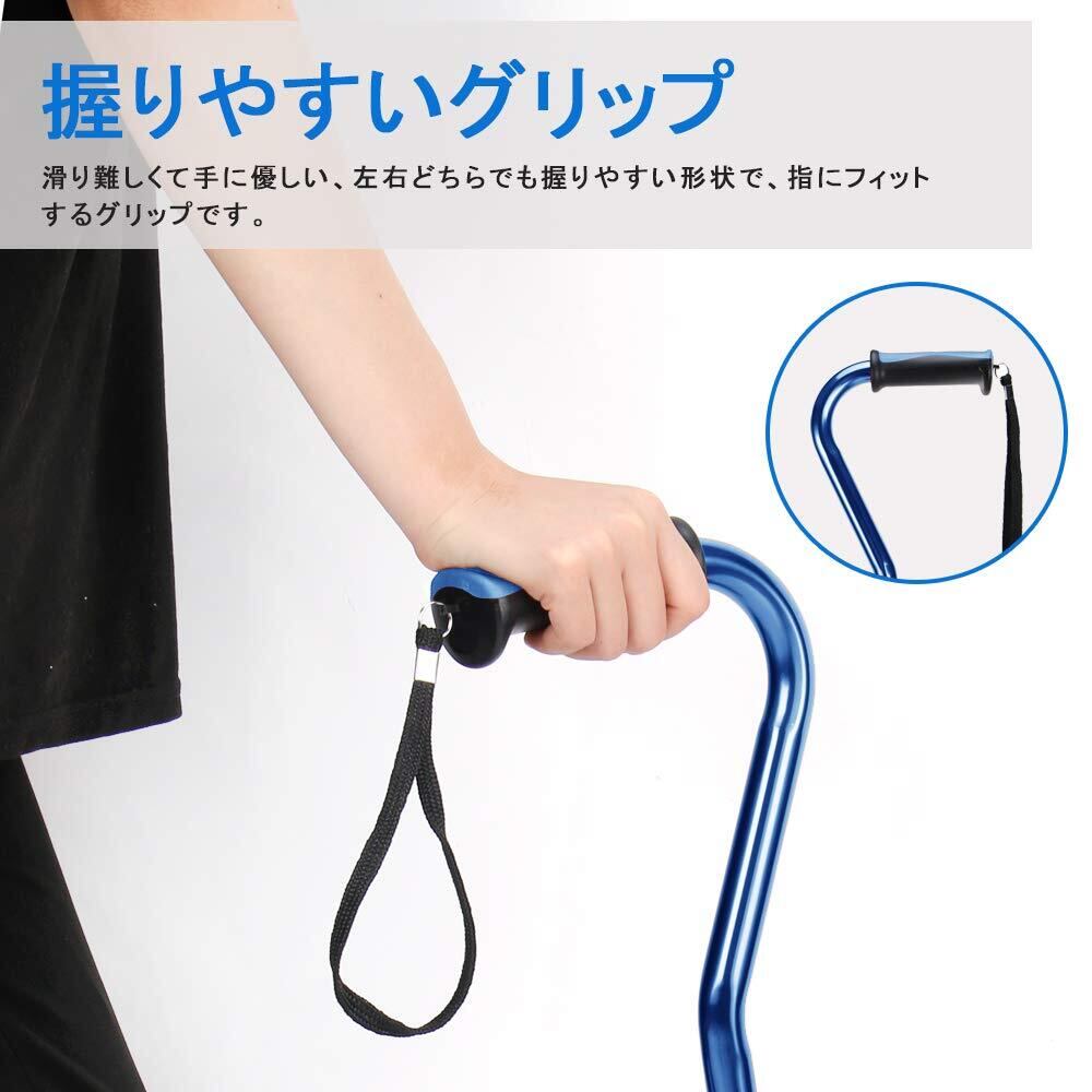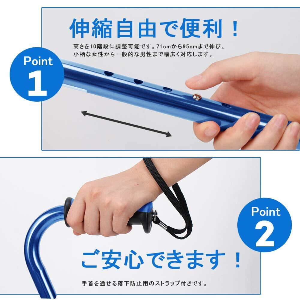 杖 4点 つえ 介護用 軽量 自立式 伸縮式 長さ調節可能 ステッキ 歩行補助 高齢者 リハビリ 敬老の日 (ブルー)