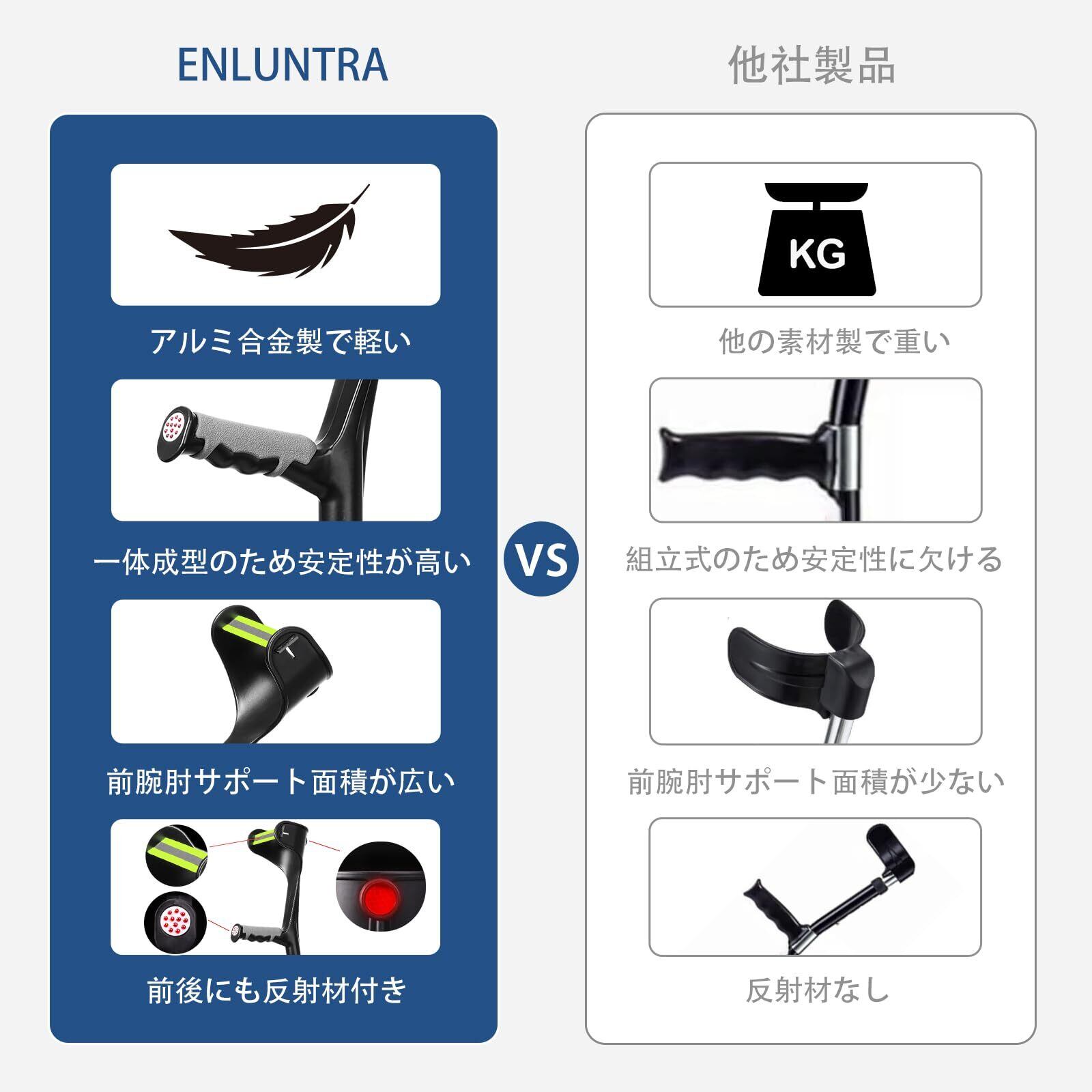ENLUNTRA クラッチ杖 男性用 軽量 折り畳み 松葉杖 女性用 ロフストランドクラッチ ロフストランド杖 杖 介護杖 アルミ 丈夫 滑りにくい 高さ調整 10階段 対応身長135~180cm 耐荷重100kg