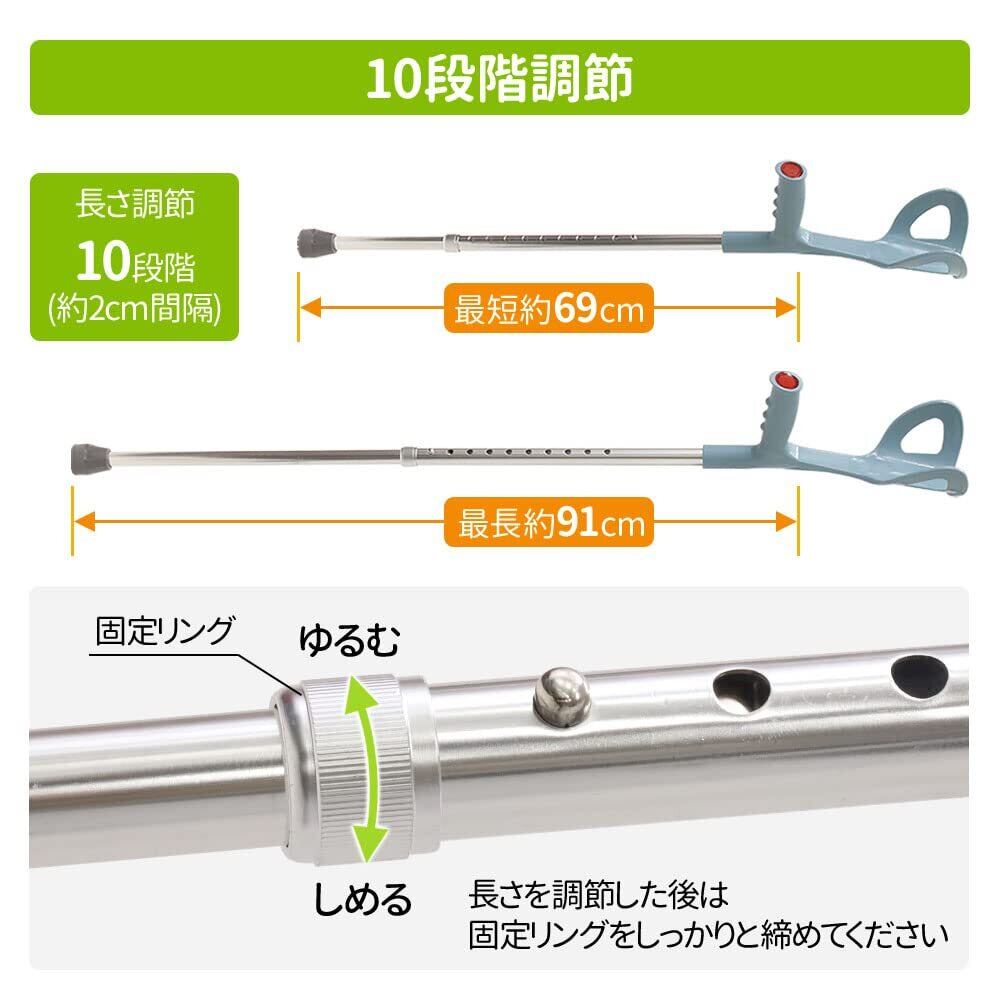 クラッチ杖 松葉杖 まつばづえ ゴム先で滑りにくい 軽量 伸縮式 ステッキ リハビリ カフクラッチ杖 10段階調節可能 介護補助 トレッキングポール 敬老の日 父の日 プレゼント 歩行補助 seathestars