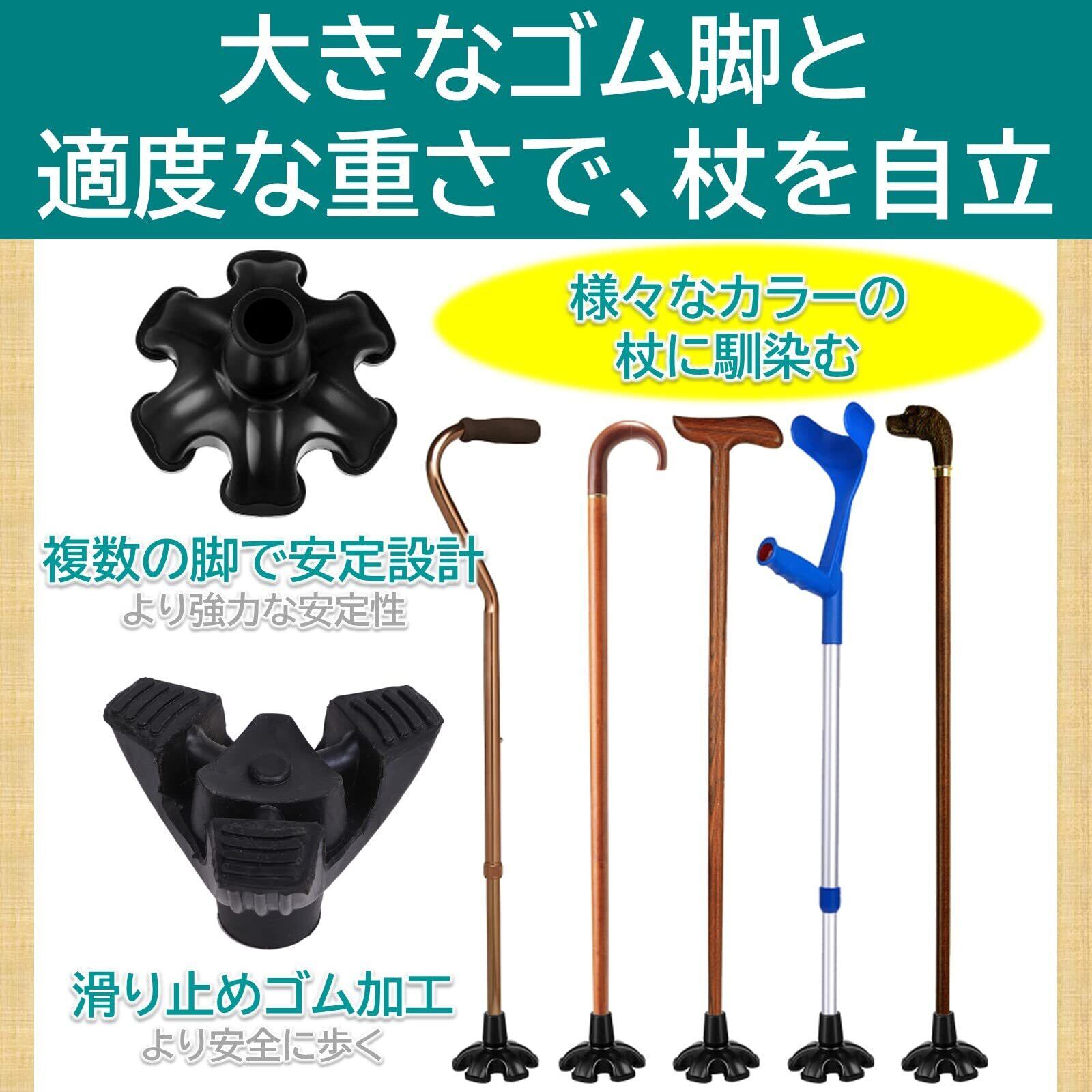 【2022最新】ルボナリエ 杖 替えゴム ステッキ ステッキ用 杖用ゴム足 滑り止め加工 転倒防止 滑り止め (ブラック 3脚 16mm 2個)