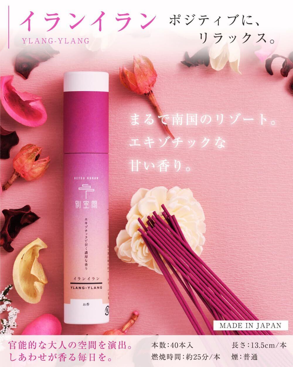 ️内容量:40本 ️原産国:日本️香り:イランイラン️長さ:13.5cm️燃焼時間:約25分