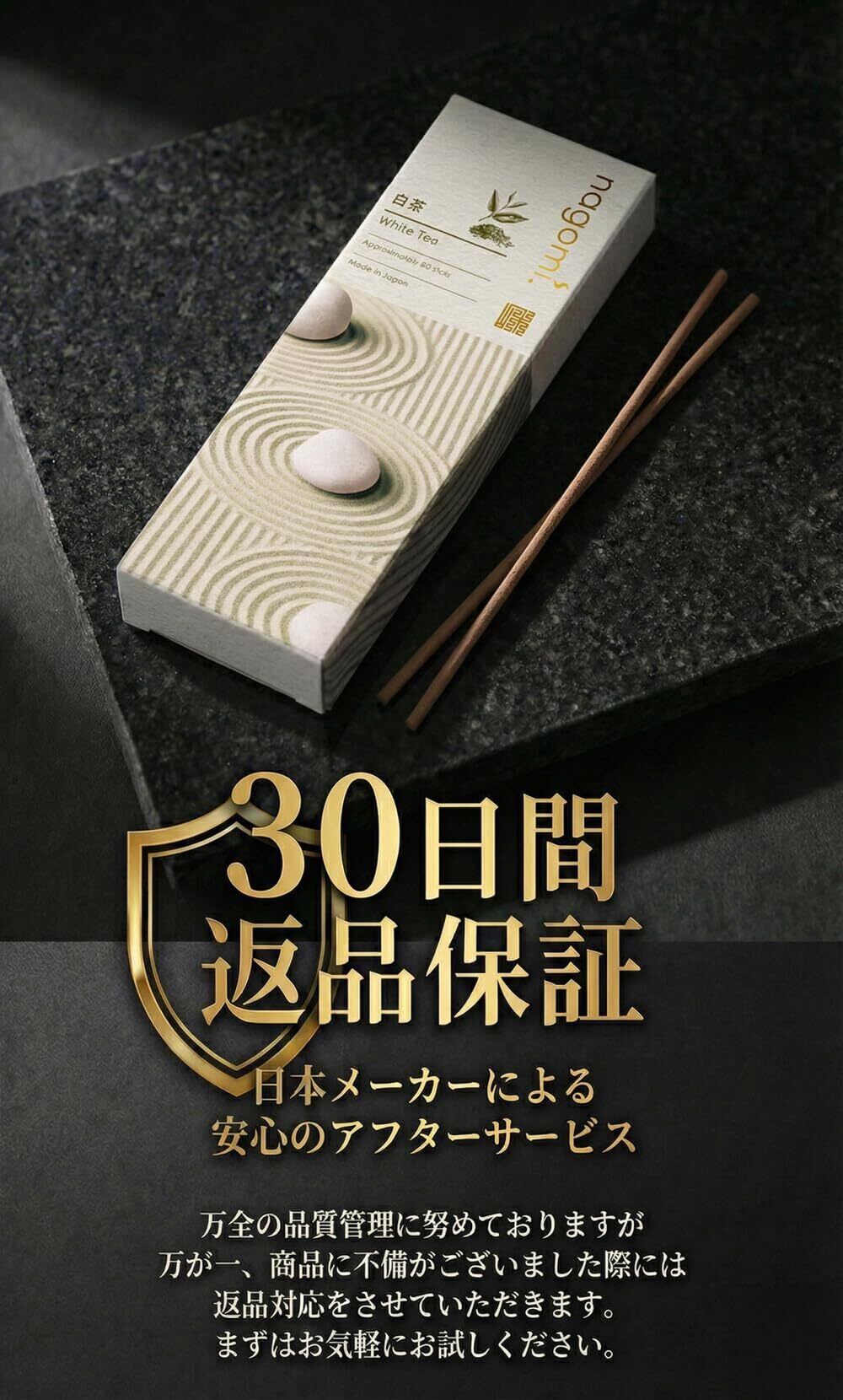 【ご使用上の注意】 燃焼中は目を離さず、不燃性のお香立てを使用し換気を行ってください。乳幼児・ペットの手の届かない場所でご使用ください。