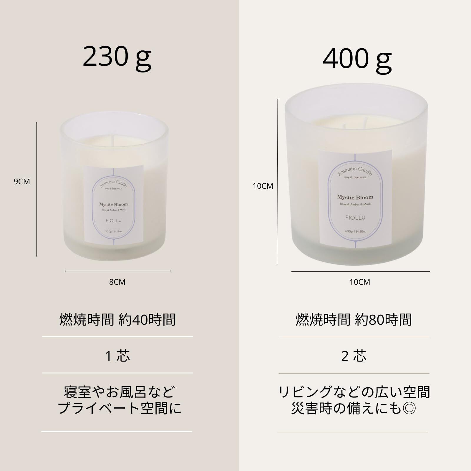アロマキャンドル 燃焼約40時間 (ローズ、アンバー、ムスク) 天然ソイワックス&蜜蝋 癒し 無煙綿芯 230g ギフト Mystic Bloom