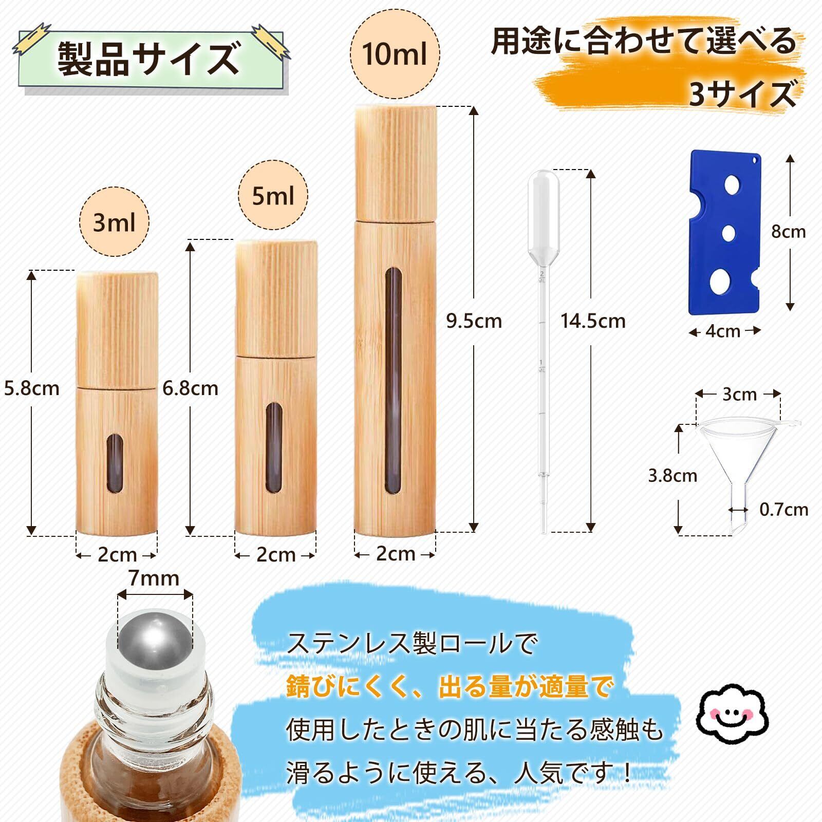 【2022最新】FaSoLa ロールオンボトル アトマイザー ロールオン 香水 容器 木目 遮光瓶 木製 遮光 3ml 5ml 10ml 竹 ガラス スポイト 詰め替え 持ち運びやすい 漏れない (3ml(1個))