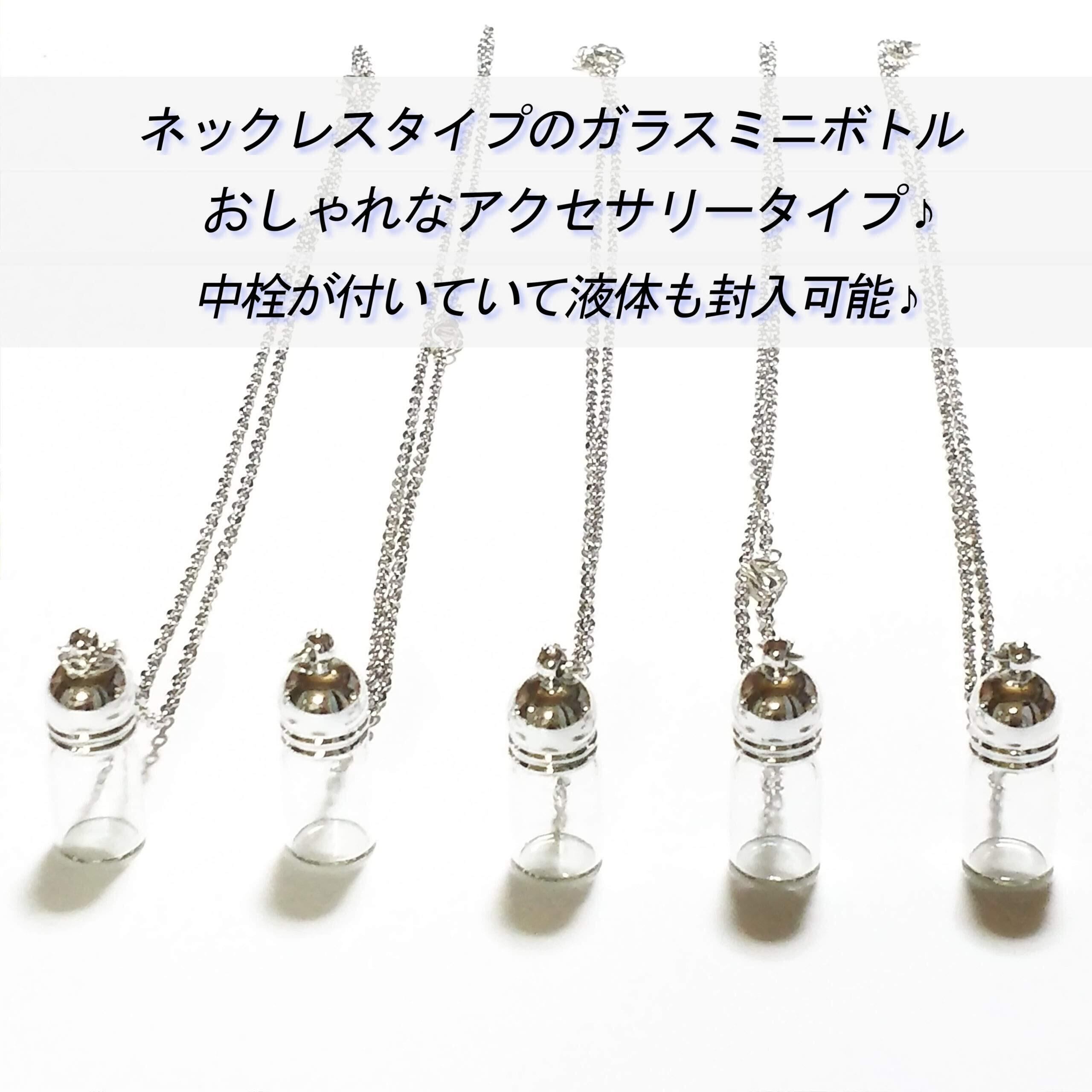 ミニボトル ネックレス ガラス容器 液体封入可能 (メモリーオイル、ハーバリウムオイル対応 中栓付き) Sサイズ5点セット