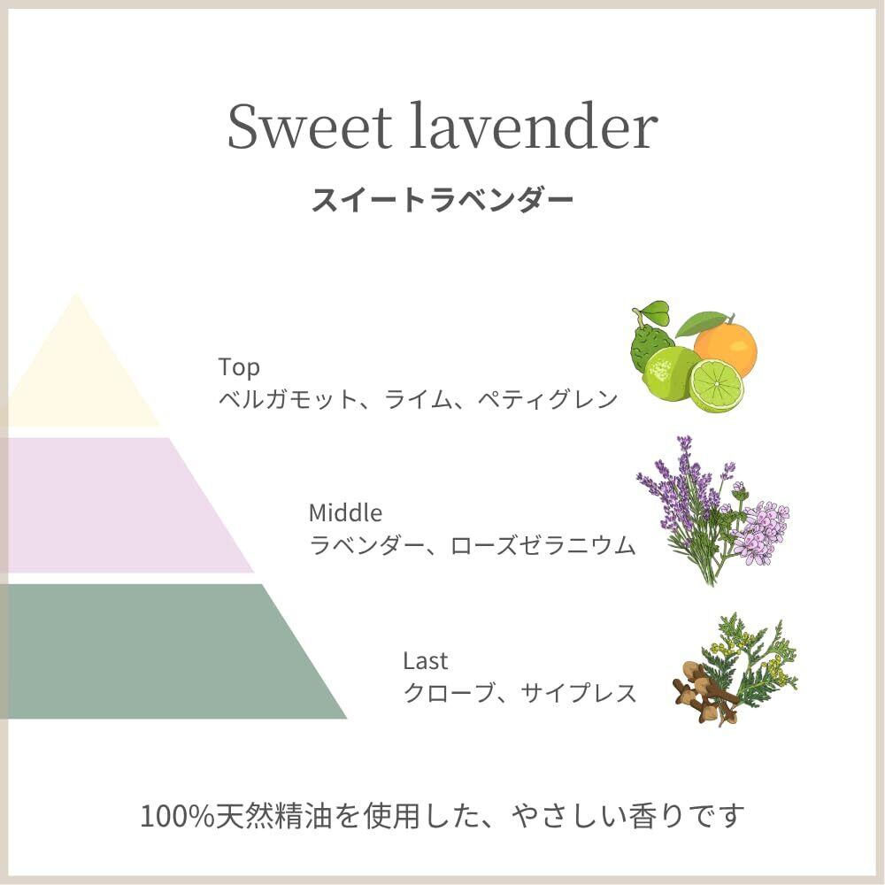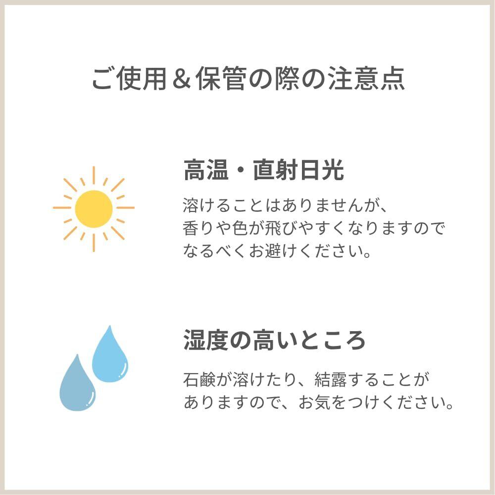 植物性オイルと天然の精油(エッセンシャルオイル)を使用し、合成香料、合成着色料、保存料は使用していません。