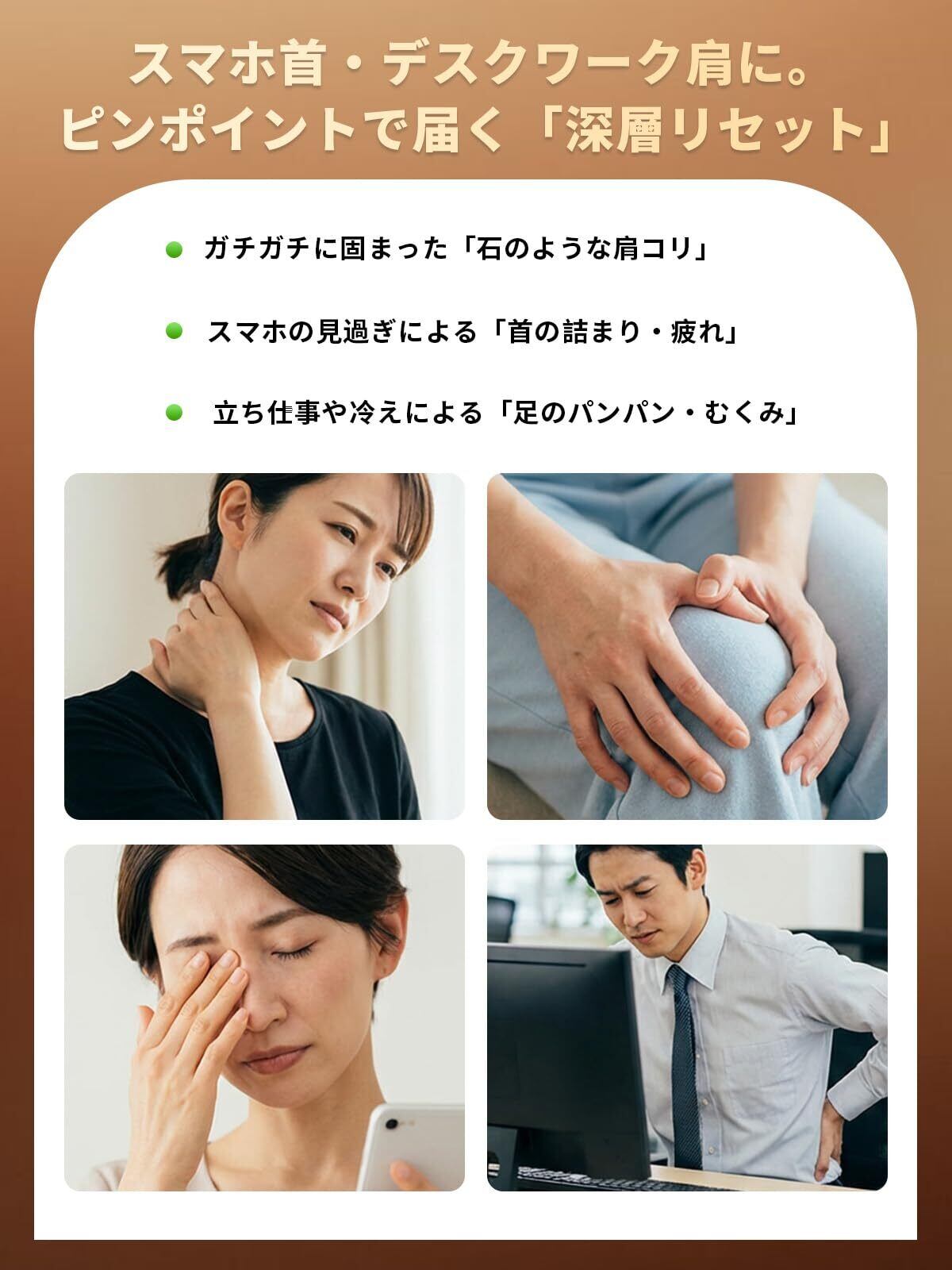【30dB低騒音&パワフルな打撃力】 高性能ブラシレスモーターを採用し、筋膜リリース作動音は図書館レベルの30dBに抑えつつ、筋肉の深層までしっかりと届き、約5kg力で硬直した筋肉を素早くほぐし、内外一体の深いリラックスをもたらします。周りを気にせず使える静音性と、気になるポイントを確実に捉えるパワフルさを両立。強い刺激が苦手な方にも、しっかりケアしたい方にも、「ちょうどいい強さ」を提供します。