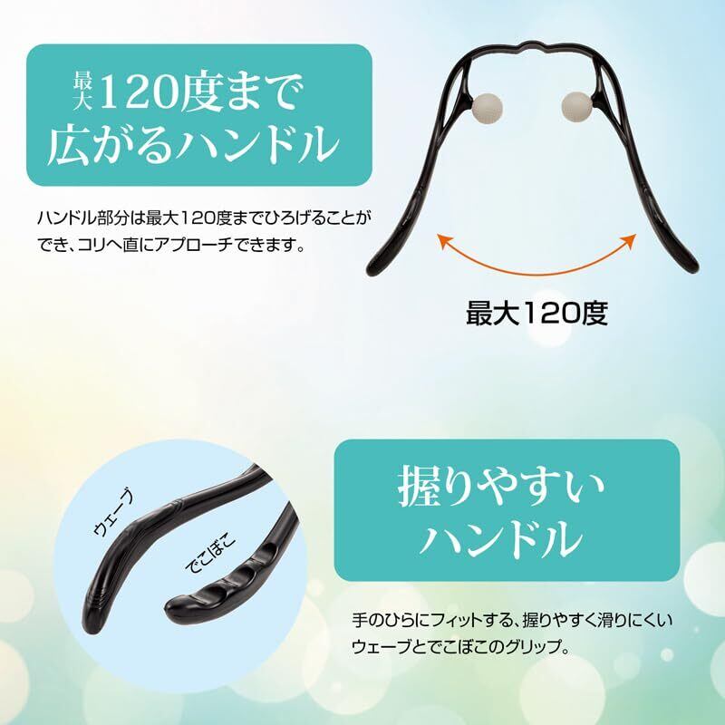 首・肩・腰・足のコリをWのもみ玉でほぐします。筋肉のコリをほぐし、気分すっきりリフレッシュ!